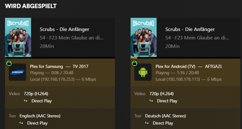 Wenn ich meine Serie reinmache, rendert er gar nichts und macht eben "Direct-Play", was perfekt ist, da meine Synology NAS 0% Auslastung hat.