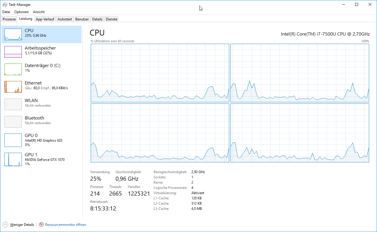 Das Problem was ich habe, ist das das System ansich im ganzen sehr träge ist. Wenn ich beispielsweise eine komplexe Excel Datei öffne, dann scrollt er nur sehr ruckelig. Oder wenn ich komplexe Windows Programme öffne dann baut sich das ruckelig und "schichtweise" auf.