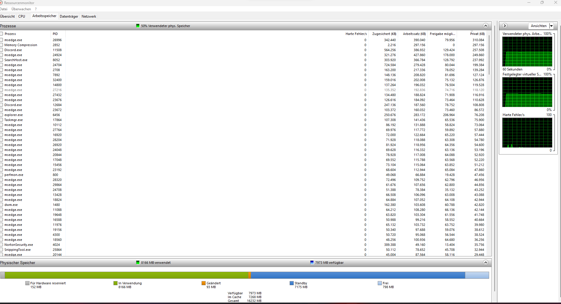Hii ich wollte mal wissen weshalb meine RAM Auslastung so hoch ist, bei aktiven Prozessen jetzt grade Edge, Discord, habe ich ne Auslastung von 47 Prozent.