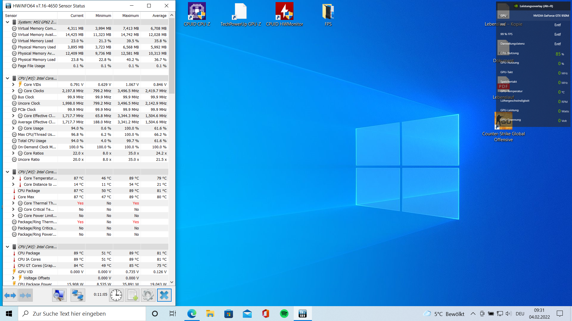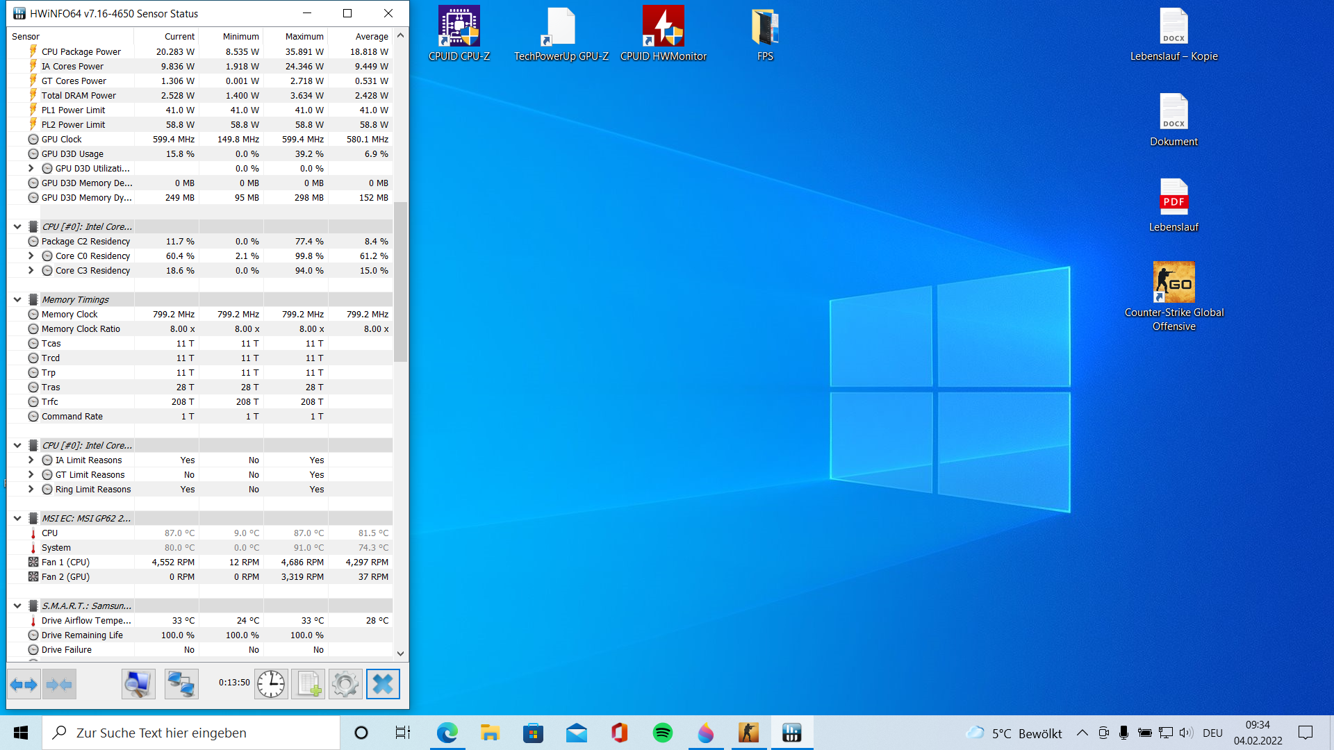 Na guggemal da, was sagt denn HWMonitor da? Die rot markierten Zahlen stehen für ein Limit - HWiNFO64 (wie ichs ja von Anfang an schon gesagt habe) hätte dir jetzt auch den Grund fürs Throttling nennen können, der CPUID HWMonitor kann das scheinbar nicht.
