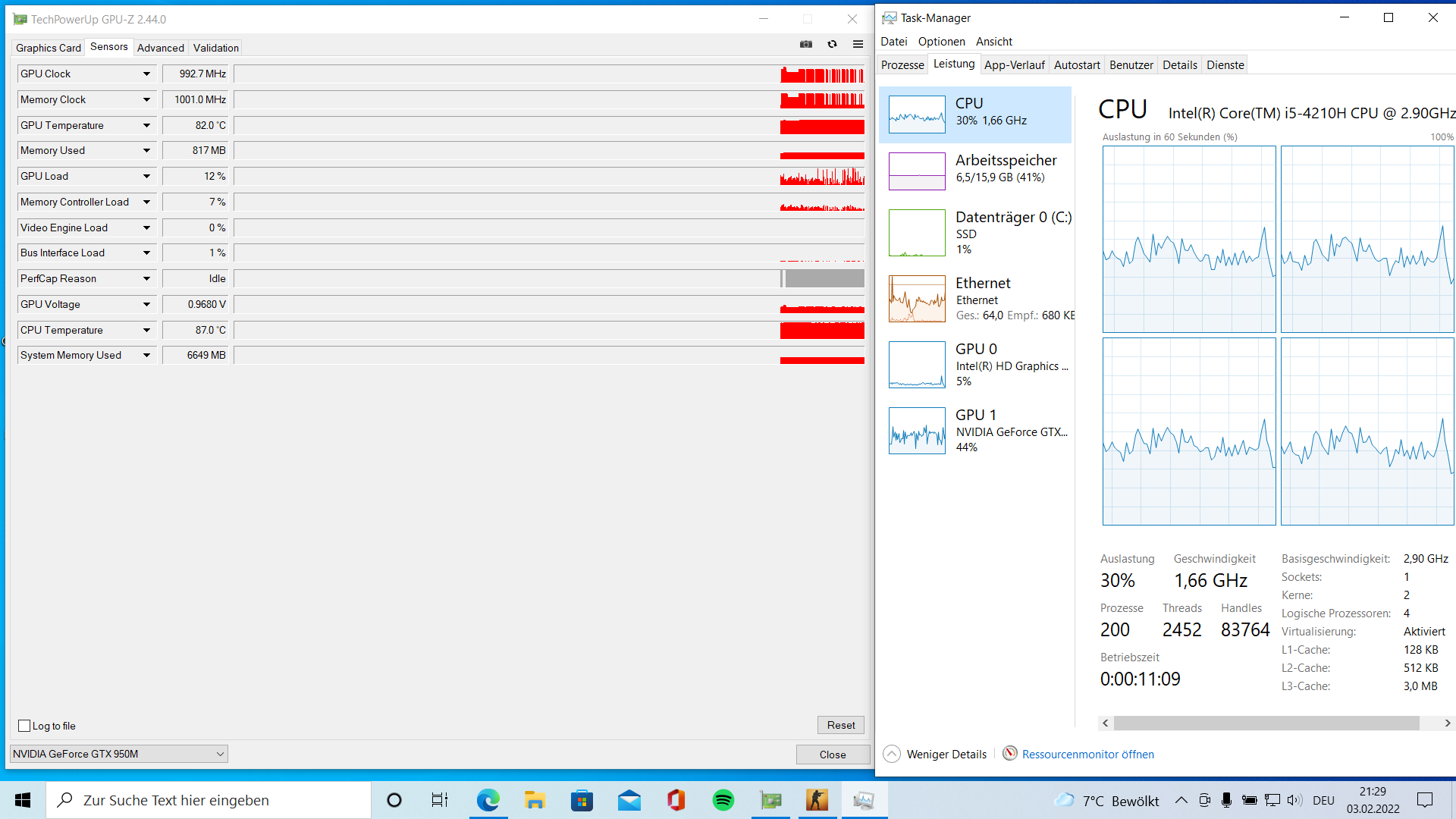 Schau dir doch einfach mal die Taktraten deiner GPU im GPUZ-Diagramm an: lauter Spitzen, die aber nicht gehalten werden können und dann regelt es wieder herunter. Ich bin mir sicher, bei der CPU sieht es ähnlich aus.