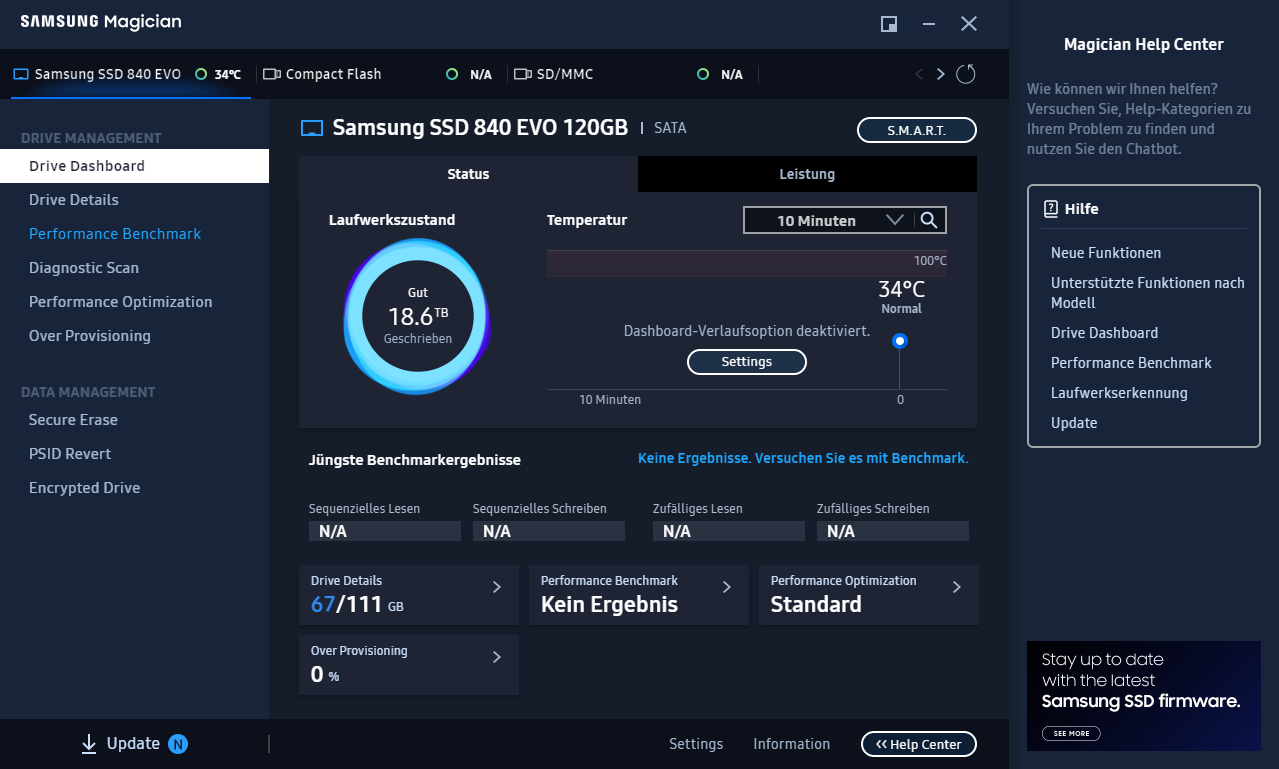 massaker schrieb:Danach sollst Du nicht im Geräte-Manager, sondern im "Samsung Magician" schauen ;-)
