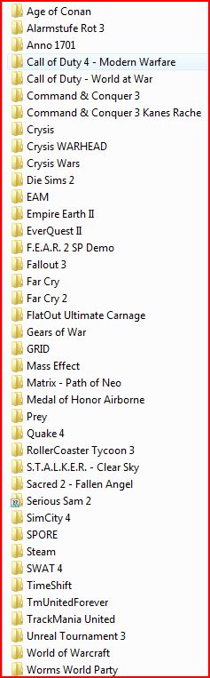 bohhh bin ich ein außenseiter. habe gerade mal 2 games installiert. da hätten wir einmal dead space. und dann noch das niemals wegzudenkende CALL OF DUTY 4