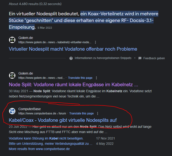 - Signalwerte sind auch so super, dass es tatsächlich eine Remote-PHY im Keller sein könnte, also Du diese Kapazität nur mit max. 107 anderen Kunden teilst - da wirst Du Dich mit der Telekom-Glasfaser nicht großartig verbessern, wo sich max. 32 Kunden 2,5Gbit/s Downstream teilen müssen