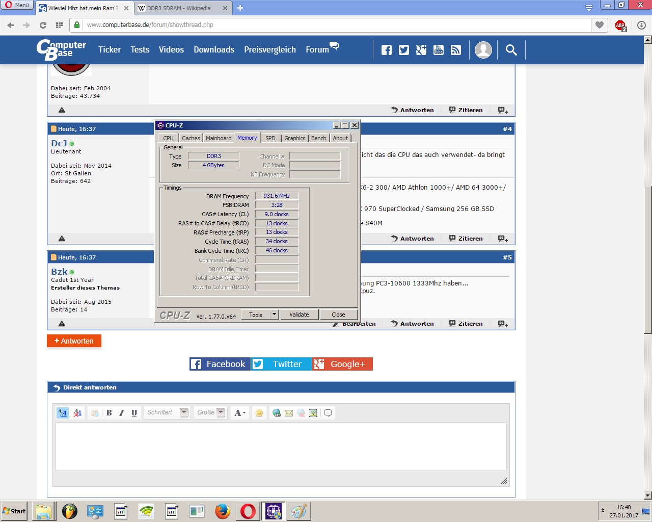 Dann wieder CpuZ Memory gecheckt und plötzlich habe ich 931 Mhz.