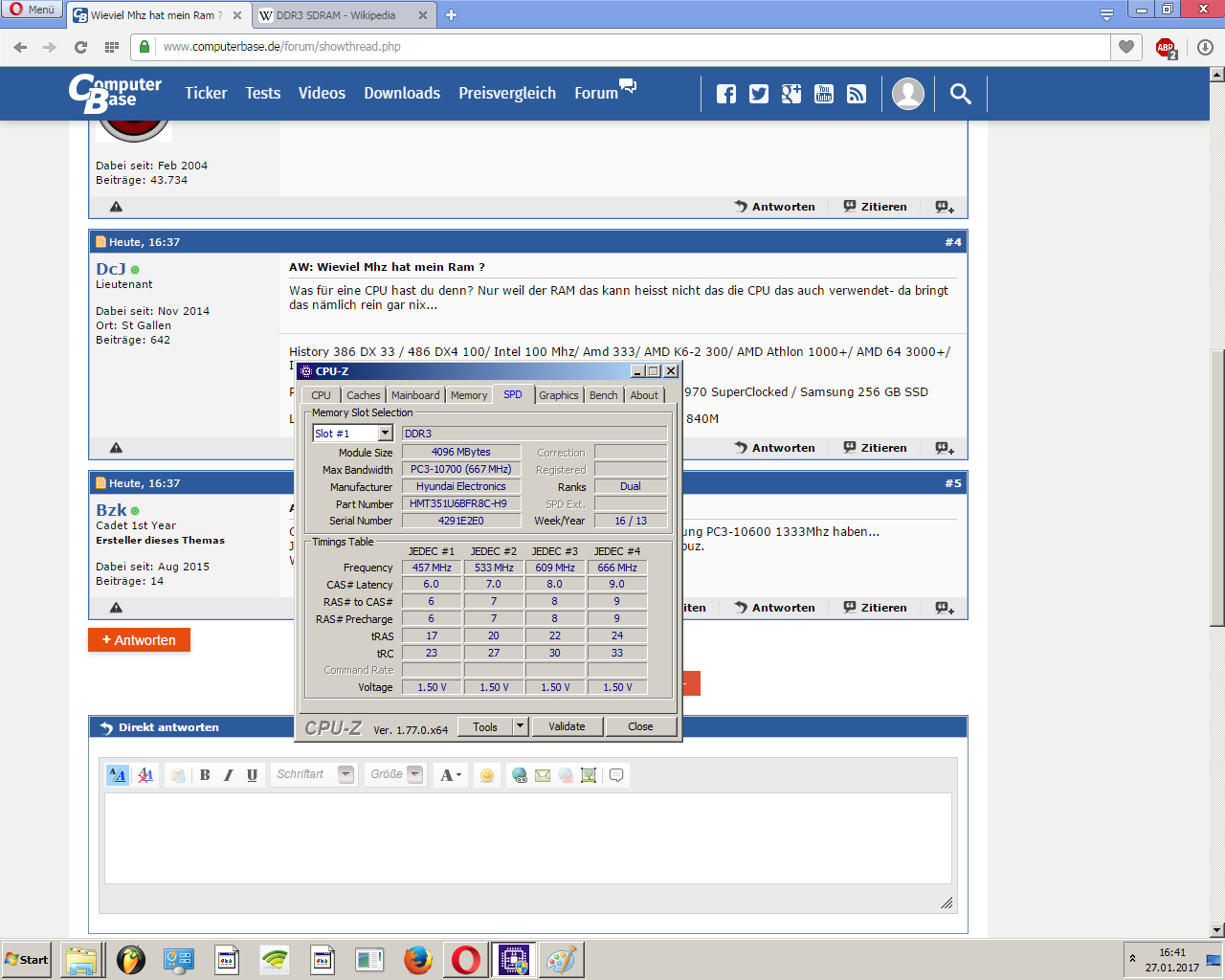 Ich wollte mal herausfinden wieviel Mhz mein Ram speicher hat und habe es mal mit CpuZ gecheckt.
