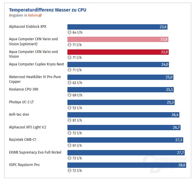 Denn da gehen meistens zu vielen Variablen verloren wie z. b. Luftleistung des Lüfters bei X RPM und Wasserlanze bei gleicher RPM, Schlauchdurchmesser, AGB größe als Temppuffer, Push, pull oder Push/pull Aufbau, Wärmeleistung der Spannungswandler,....