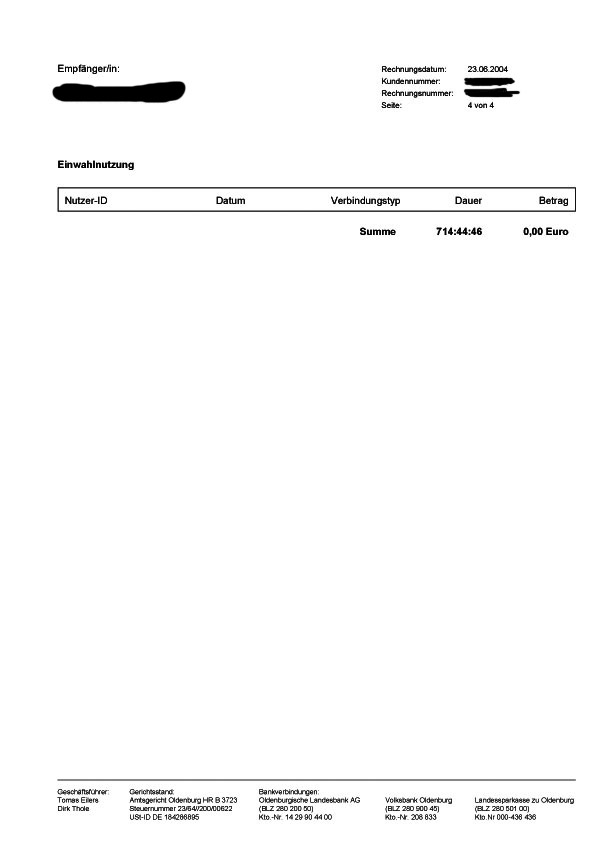 ALs beweis ist die letzte Seite meines Einzelverbindungsnachweises im Anhang.