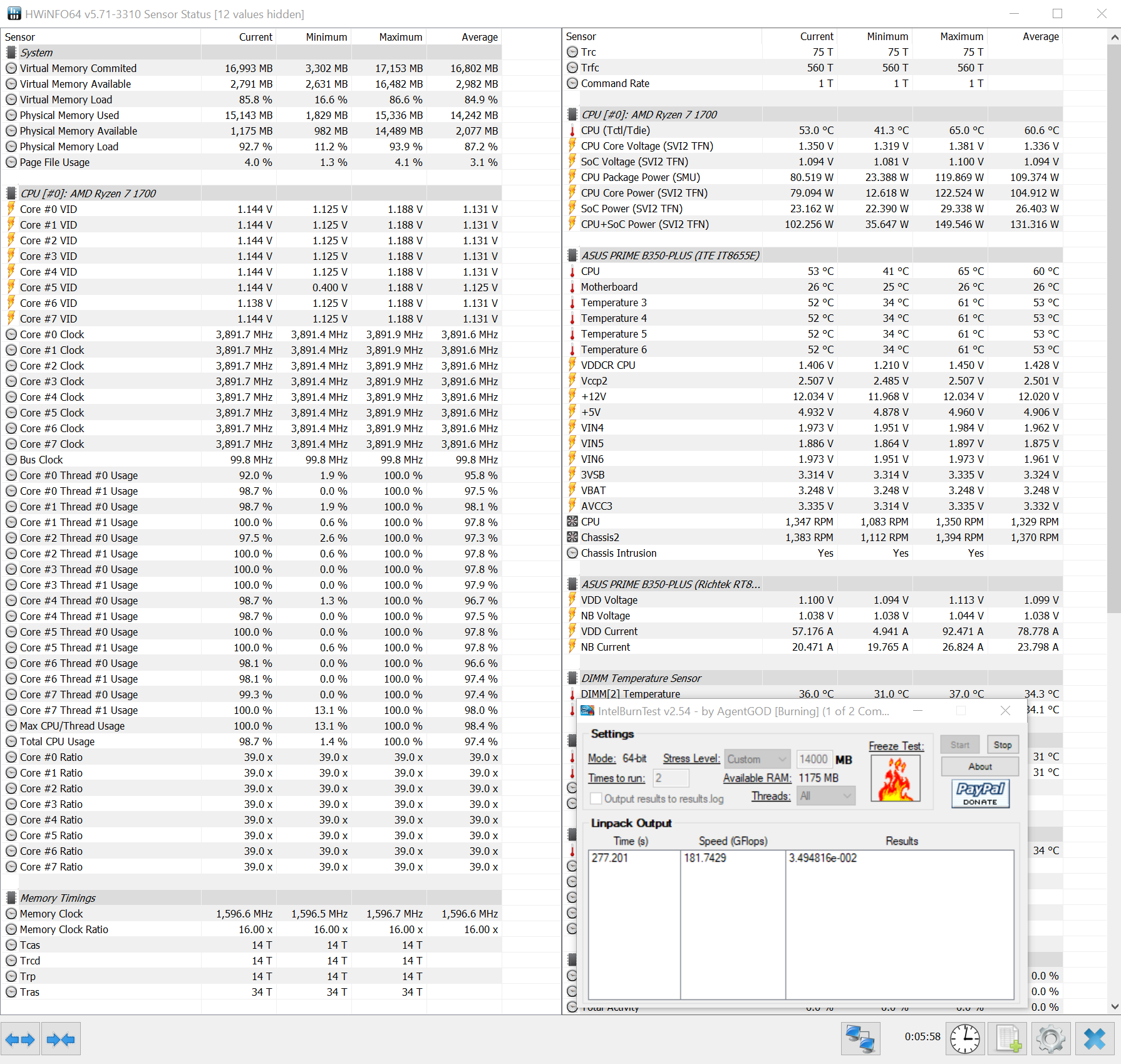 1700X@4Ghz, RAM@3200Mhz. Erreiche einen Maximalwert von 181W für CPU+SOC Power.