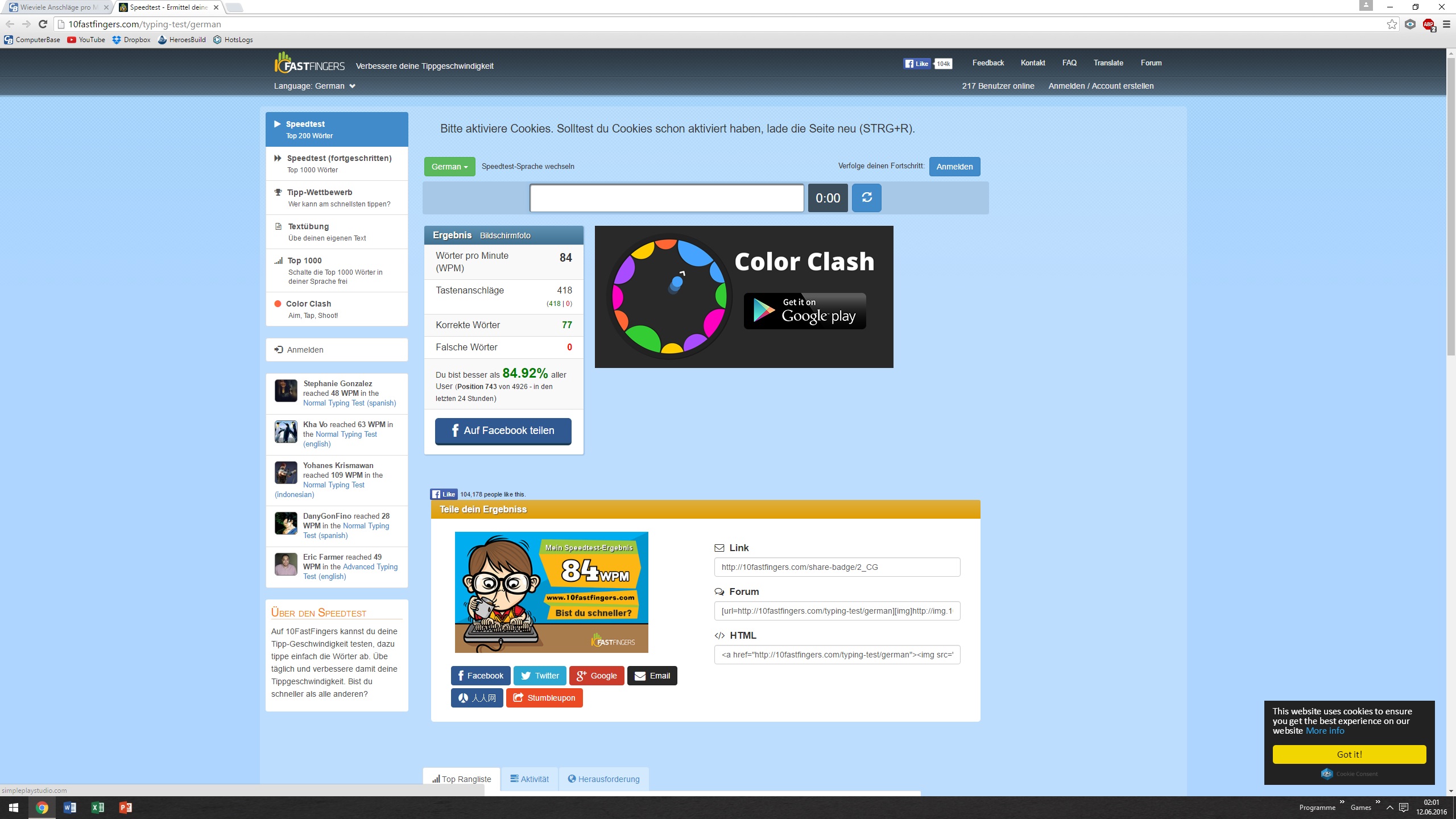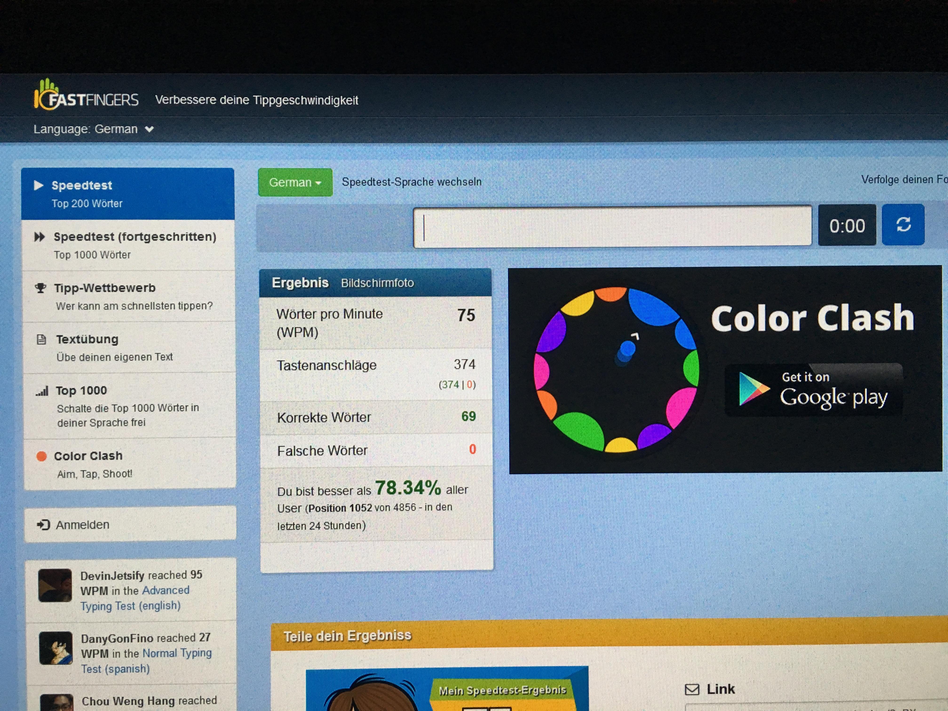 Würde mich mal interessieren, wei weit die Spanne der User hier an Board so ist, was die Anschläge pro Minute angeht.