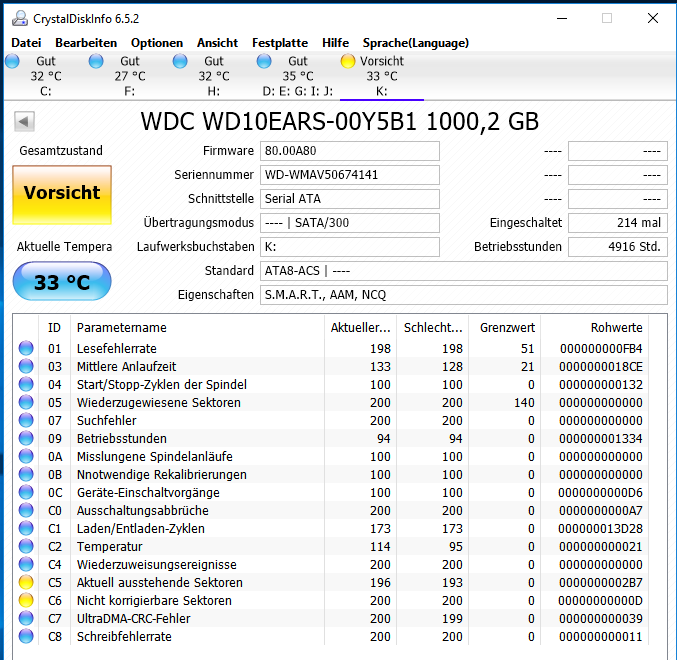 Die Festplatte ist jetzt gut 8 Jahre alt, lief aber nur sehr selten mal 24 Stunden am Stück oder länger.
