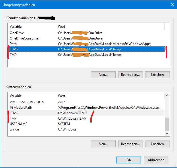 für zum Beispiel Installationen und das sind die bereits hier mehrmals genannten 2 TEMP Ordner,