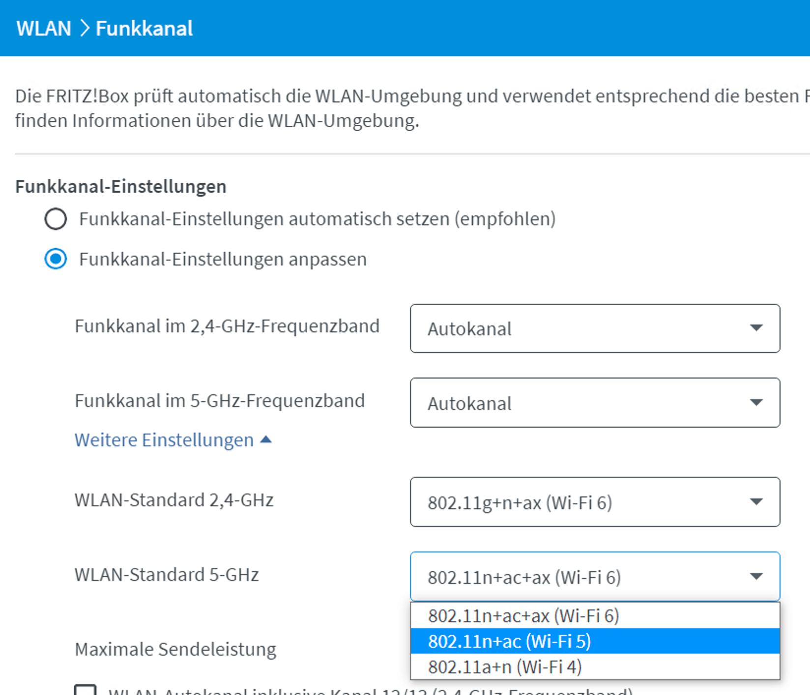 Ich würde daher gern mal versuchen, Wifi 6 zu deaktivieren, um zu sehen, ob es dann wieder normal klappt. Ich brauche kein Wifi 6.