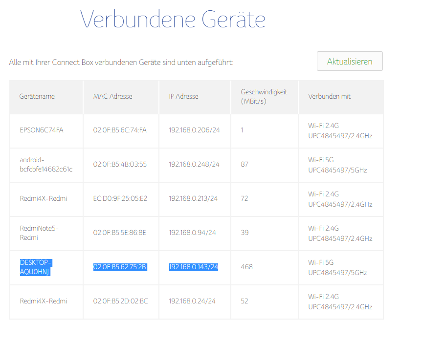 Die ConnectBox vergibt derzeit die IPs per DHCP.