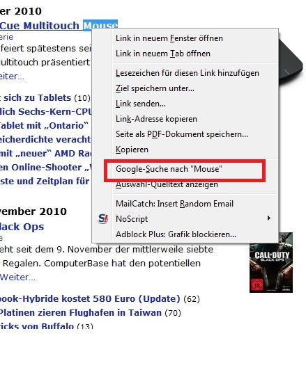 ich würd gern wissen, ob ich einen mit der maus markierten begriff über rechtsklick im kontextmenu des FF sofort in der wikipedia suchen lassen kann.
