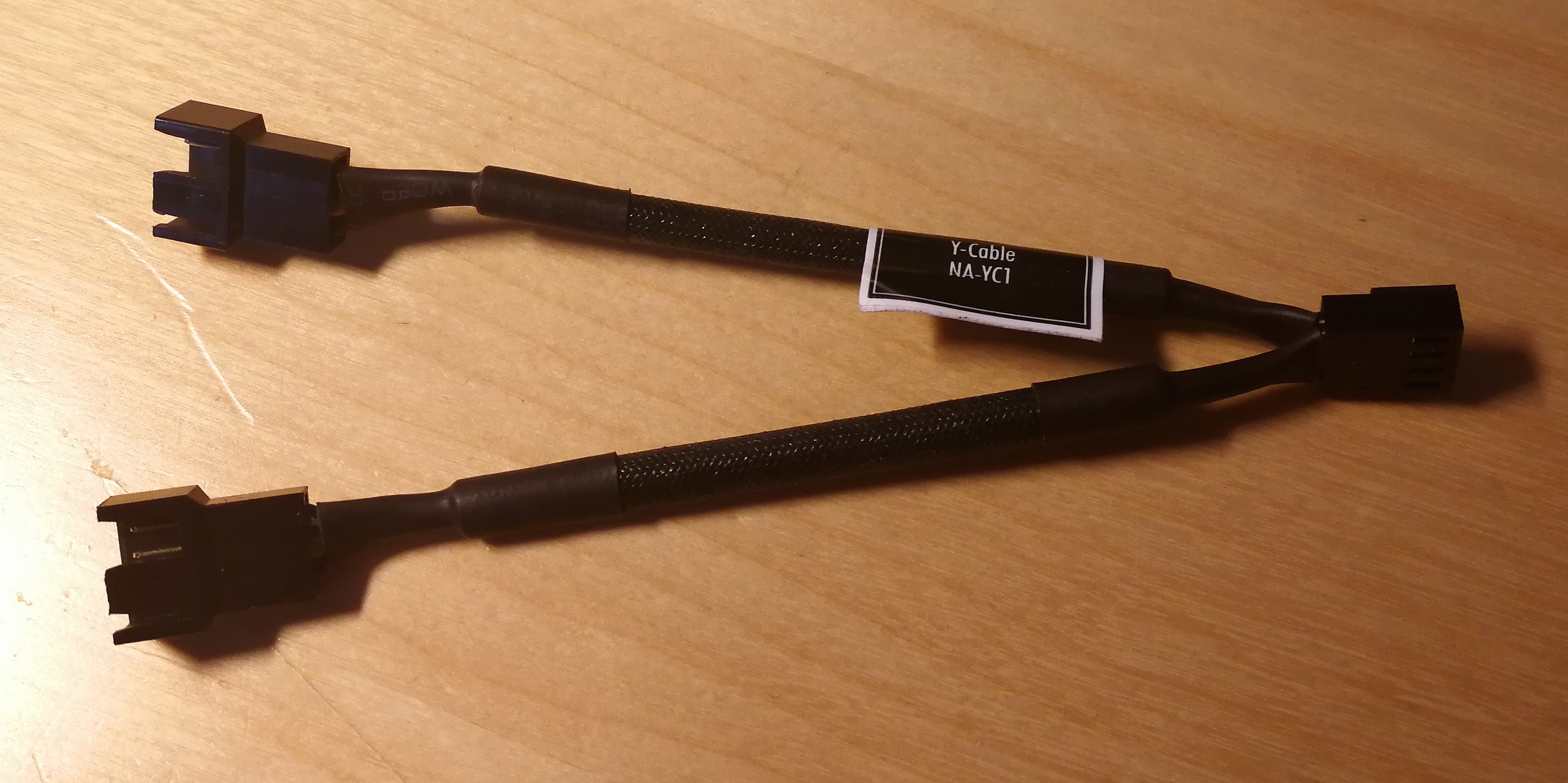 1500RPM sind mir dann doch ein wenig zu laut. Ich habe der PC runtergefahren und zwischen den Lüftern und dem Y-Adapter die mitgelieferten Low-Noise Adapter - begrenzt die Lüfter auf 1200RPM – zwischengebaut.