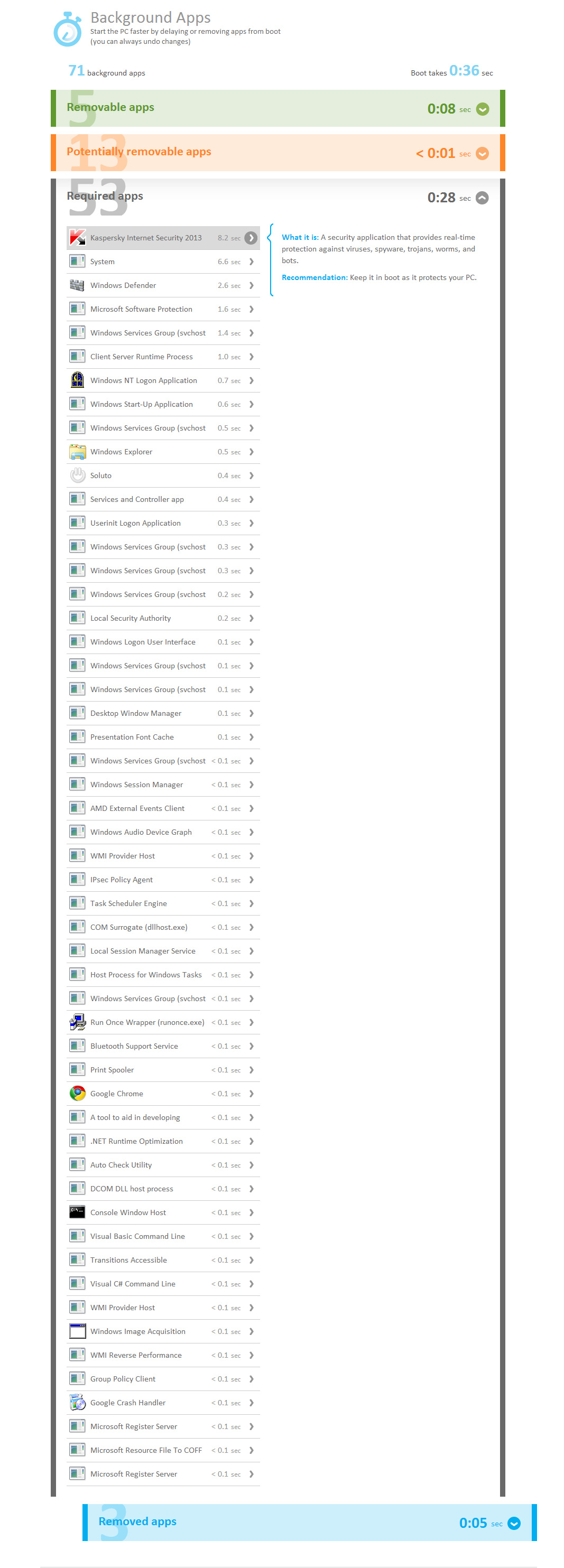 - Nur 4 Einträge im Autostart (dropbox, Kaspersky, Skype, Google Update) - schalten sich nach dem Willkommensbildschirm aber normal und schnell ein