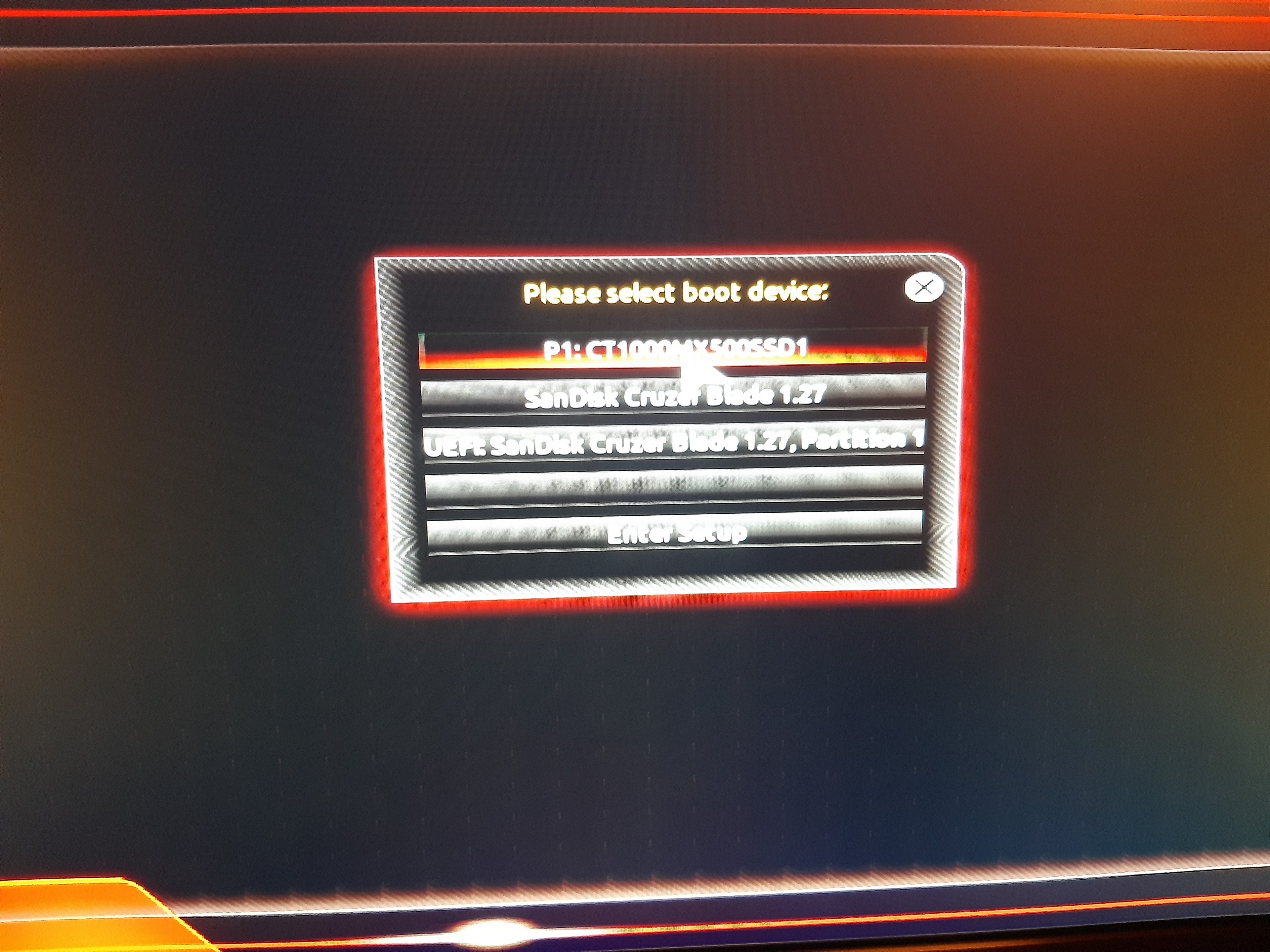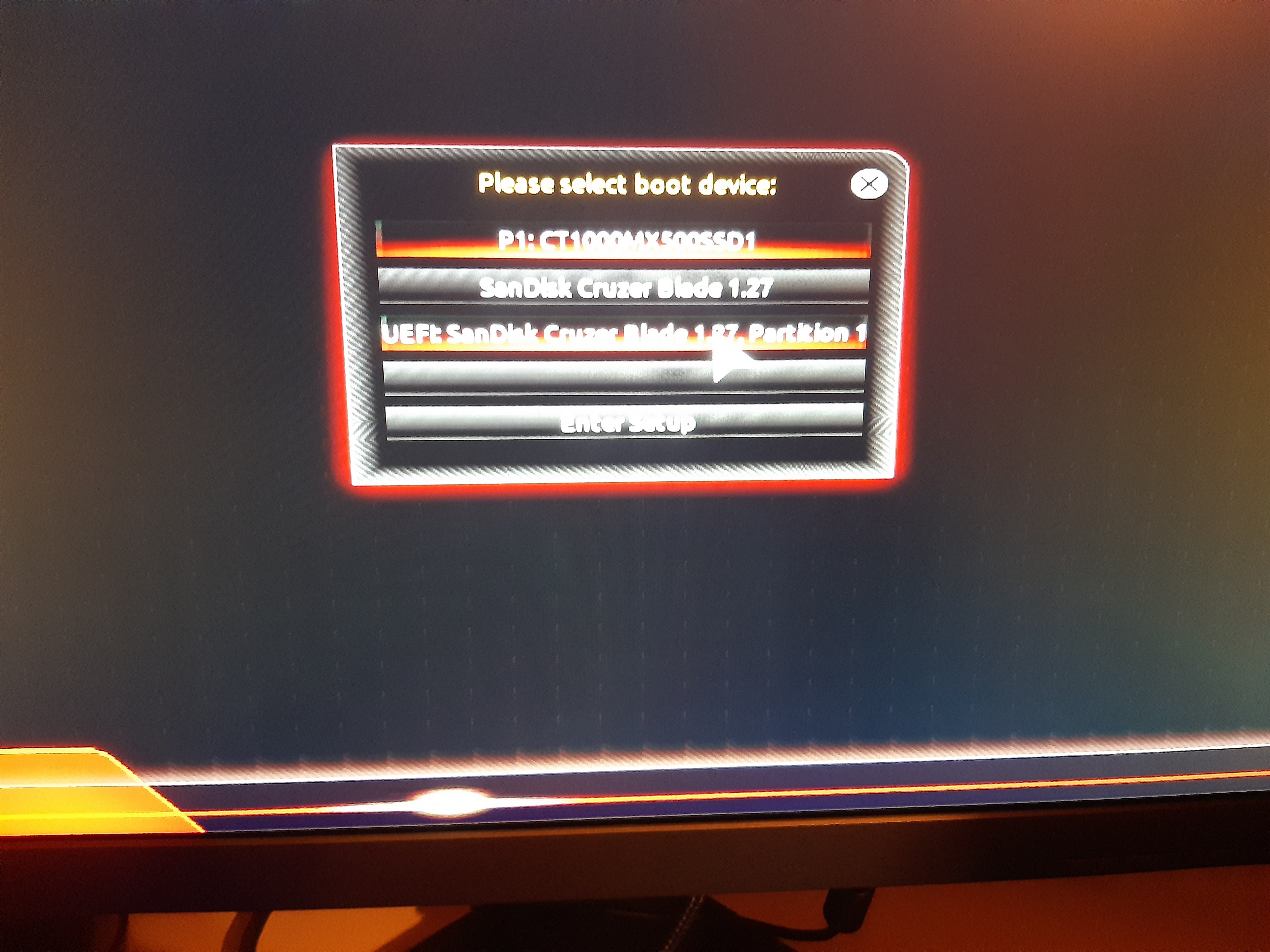 Schritt 2: Ich starte neu und wähle mit F12 nochmals den UEFI Stick aus: