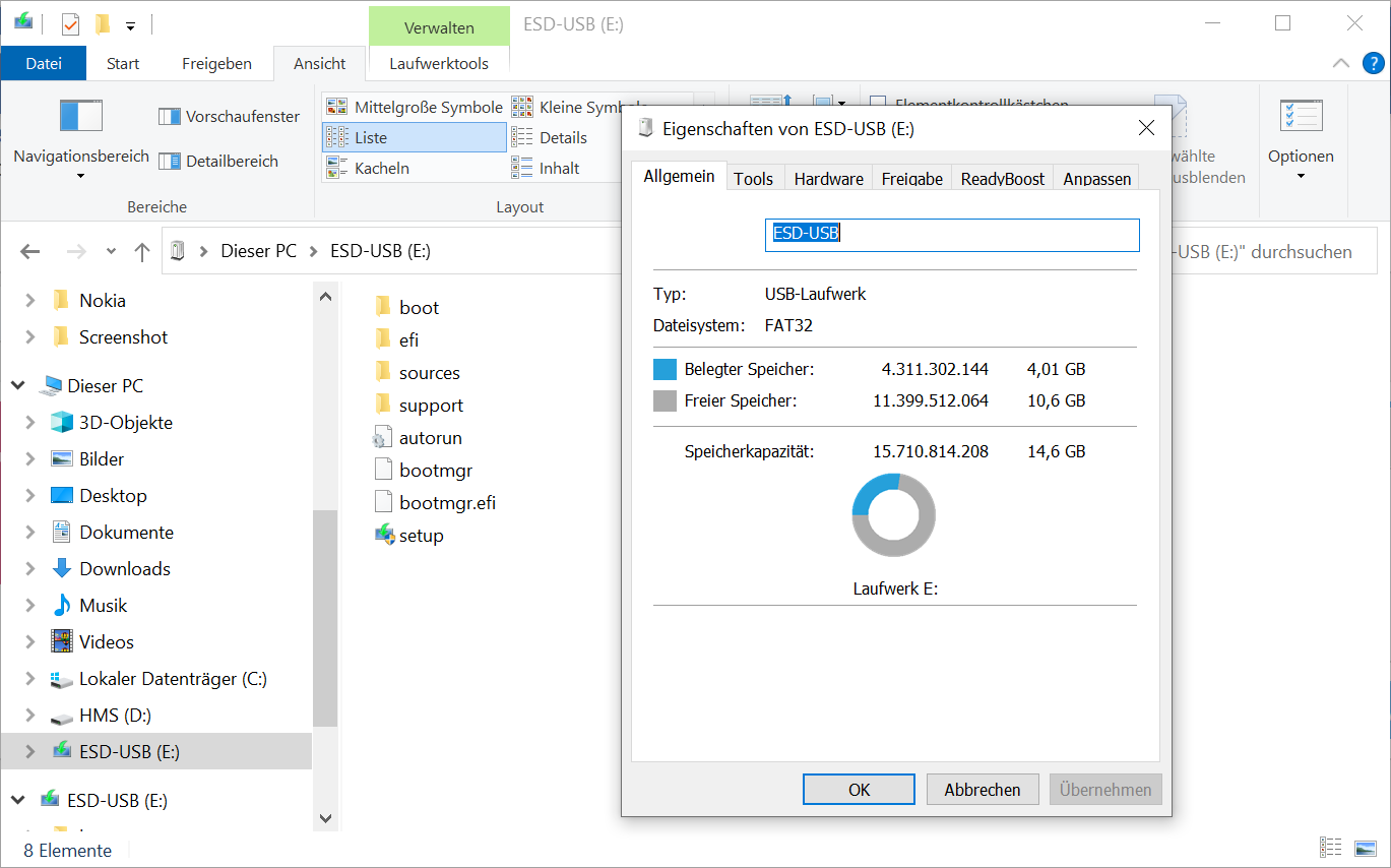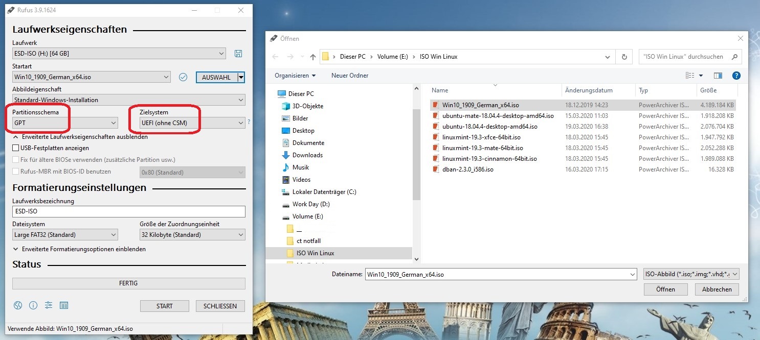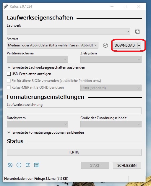 Die Bilder vom USB Stick erstellen hast du doch gesehen und da steht doch alles wird gelöscht und dann ist mein Stick Fat 32 ohne Partition 1