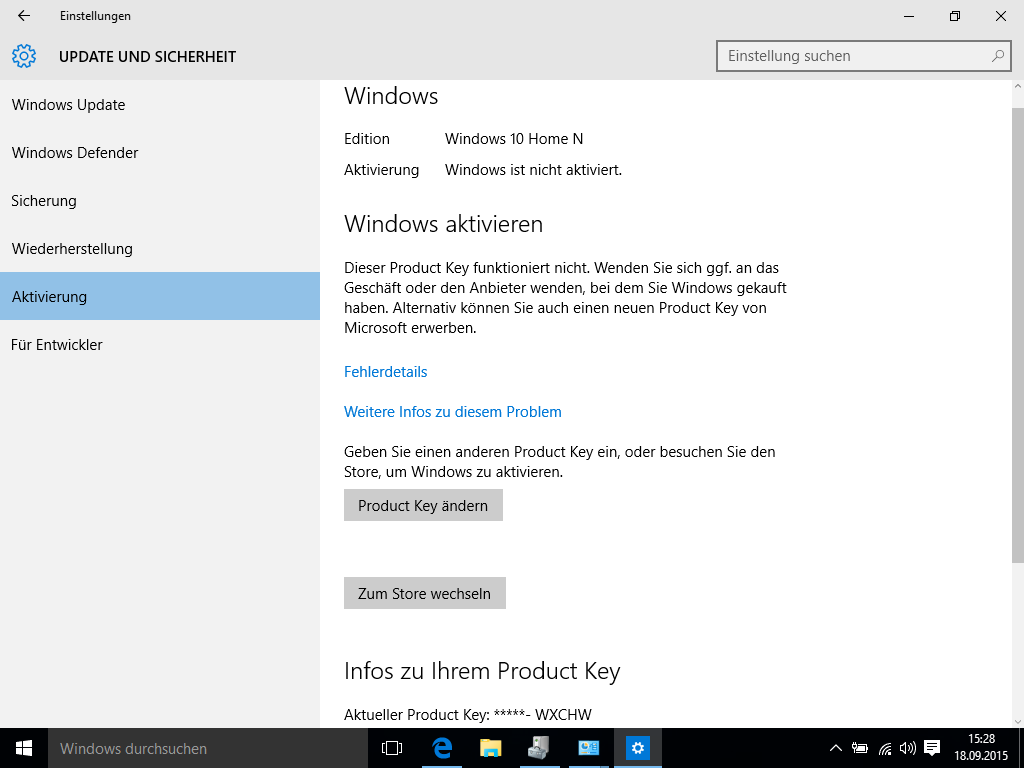 Ich hab ein Problem mit meiner Windows 10 aktivierung.