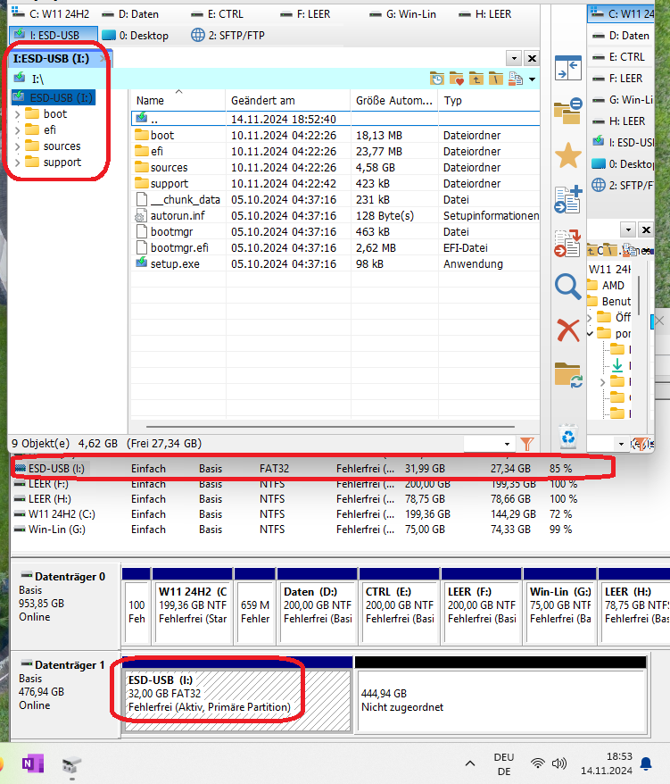 Win11 ist auf einer M.2 Platte installiert und parallel habe ich noch weitere SSD Festplatten angeschlossen, wobei ich auf eine SSD nun Win 10 installieren möchte.
