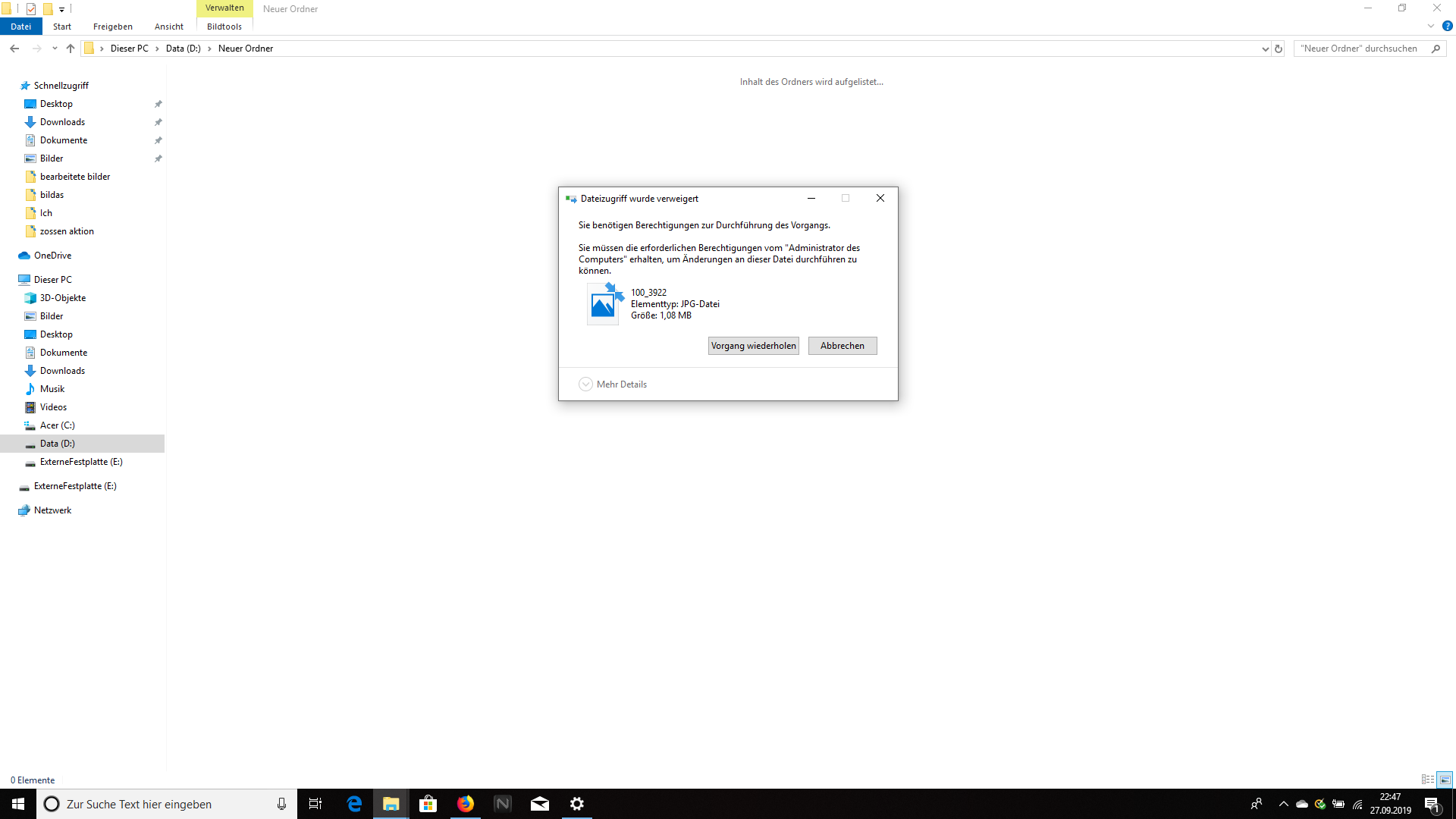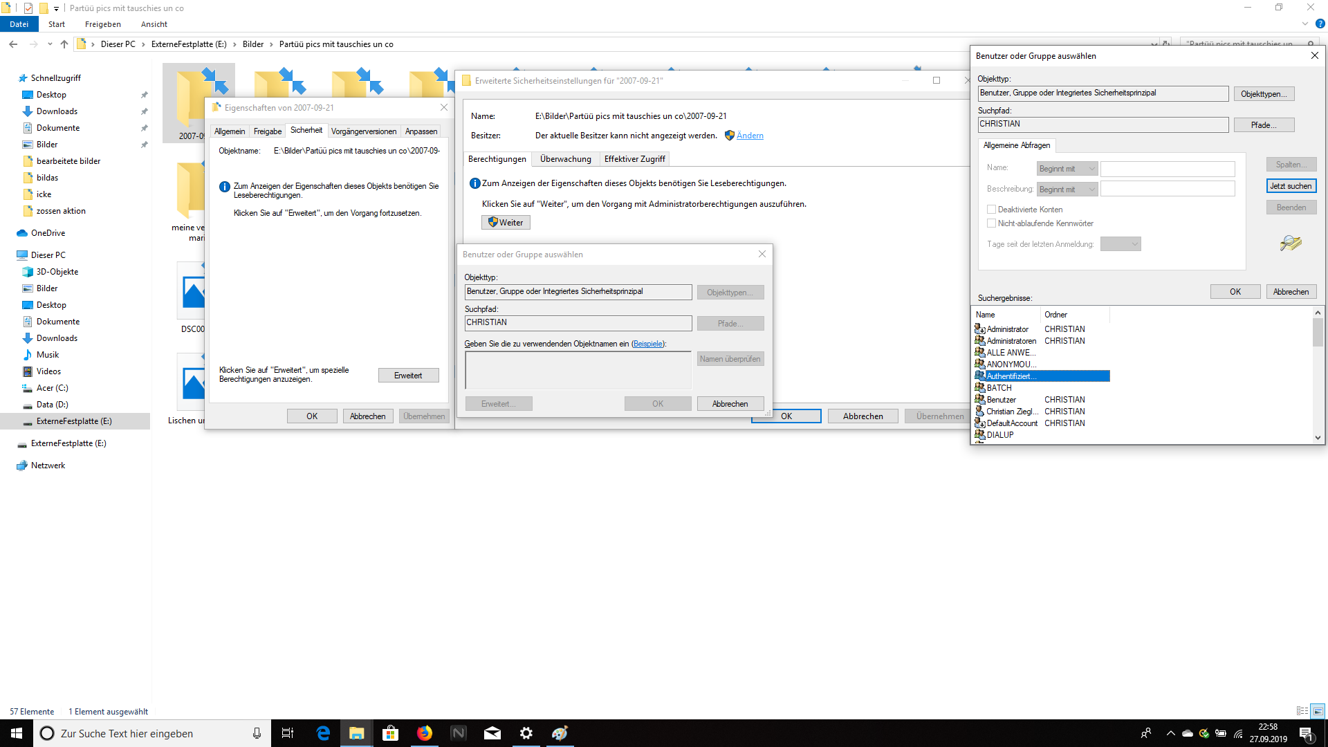 Bei über der hälfte der Bilder steht wenn ich sie öffne das ich keine Berechtigung dazu habe.