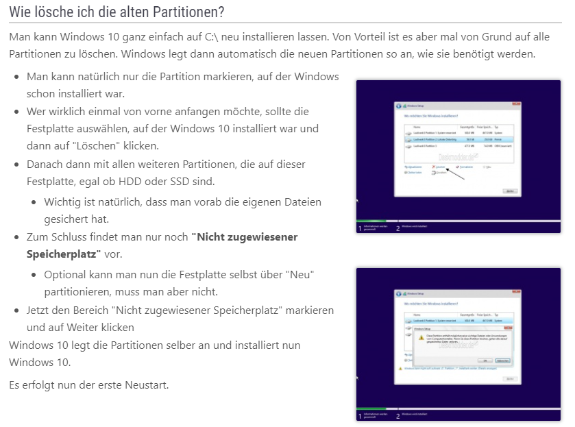 das macht die Installation automatisch. Nach dem löschen der Partitionen einfach auf "Weiiter" klicken.