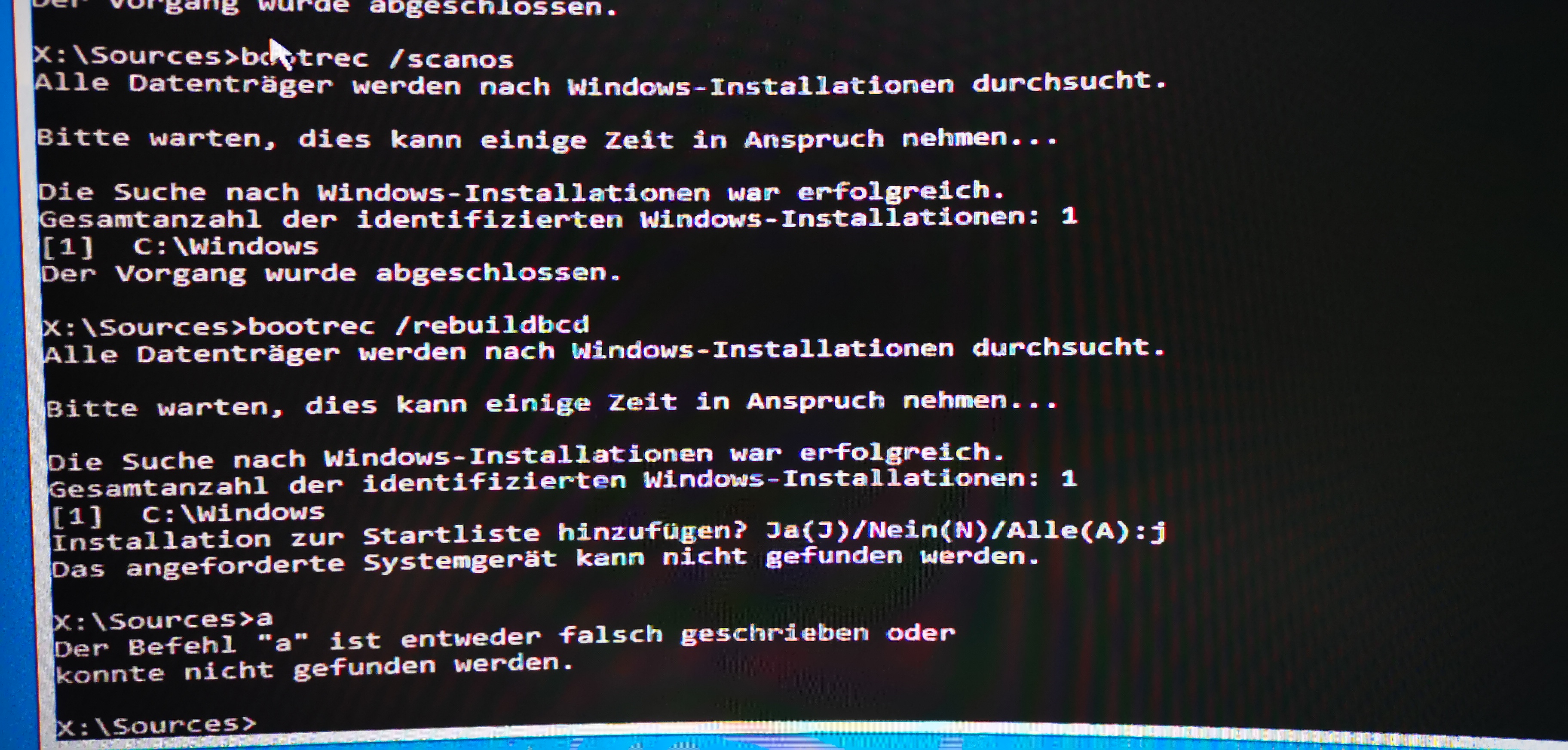 Nun bekomme ich nur noch die alte SSD gestartet. Habe schon mit /rebuildcbd etc versucht den Bootmanager zu reparieren. Siehe Fotos. Die M2 wird erkannt, er sagt dabei sogar, dass es Windows auf der M2 gibt. Kann es dann aber nicht wählen. Habe mittlerweile alles was ich weiß probiert, auch über die Systemconfiguration geschaut, wo man normal dann den standard Boot Manager wählt. Kein Windows erscheint.