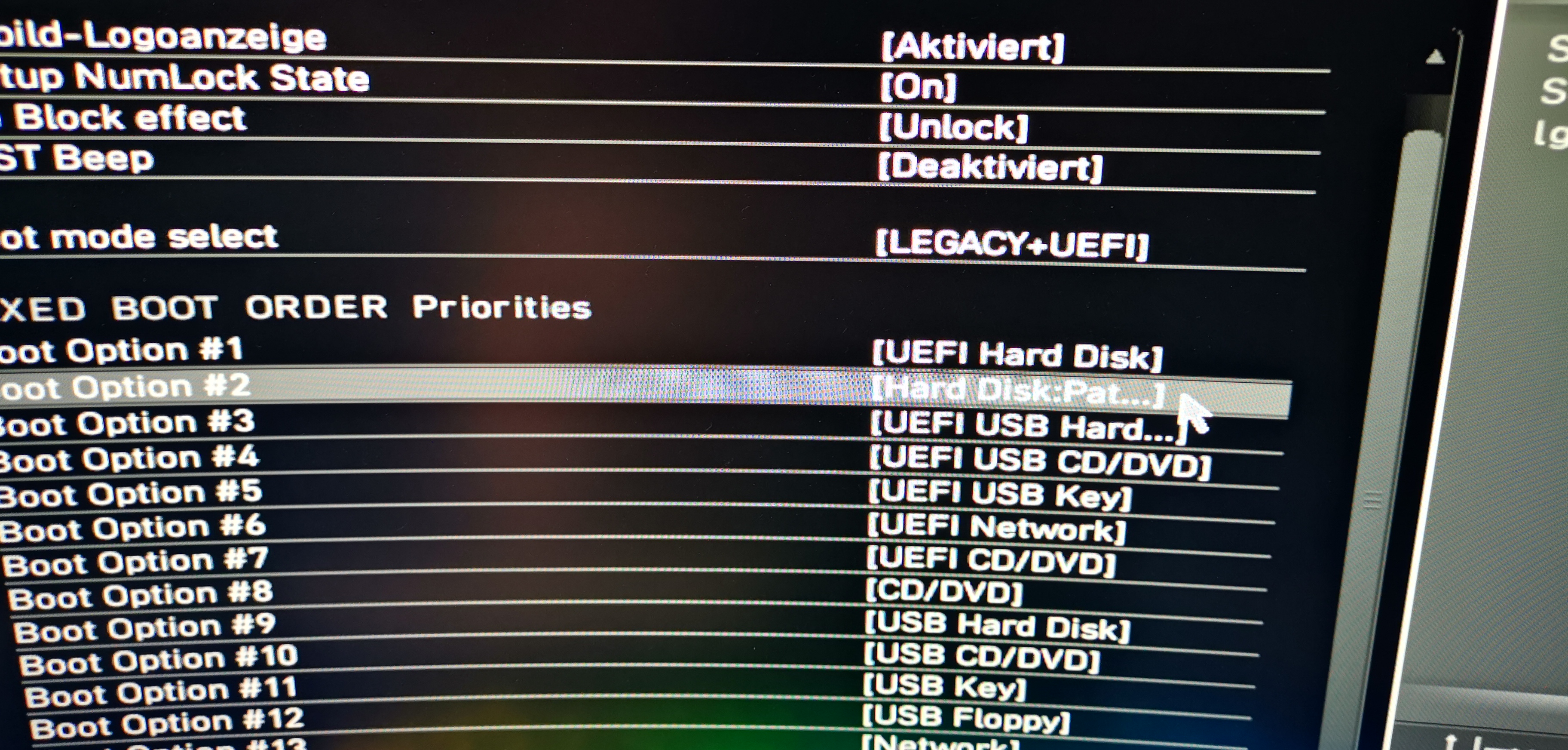 Du meinst im Uefi/Bios? Da kann ich nix verschieben. Auch über F11 direkt zu Booten geht nicht, immer nur Fehlermeldung das Boot Sektor nicht korrekt o.ä. Die Meldung ist leider immer nur 1 Sek da...
