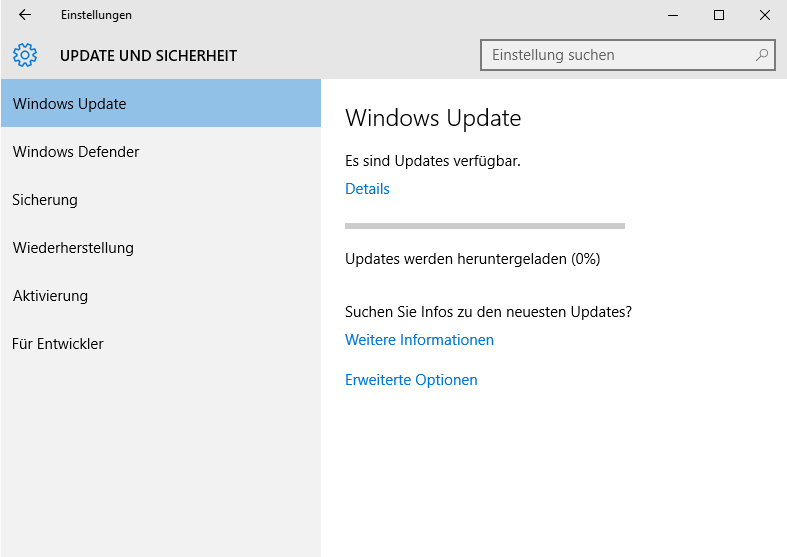 Nach dieser langen Ruhepause müssen ja zahlreiche Windows Updates vorliegen, die herunterzuladen und zu installieren wären; in den Einstellungen wird dies auch angezeigt (Bild 01).