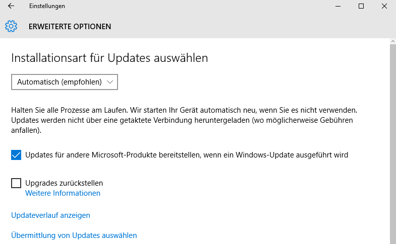 Obwohl die Installation von Updates auf <automatisch> eingestellt ist (Bild 02), passiert aber überhaupt nichts ! Ich sehe dabei auch keinen Button, mit dem ich die Installation der Updates manuell angestoßen werden könnte.