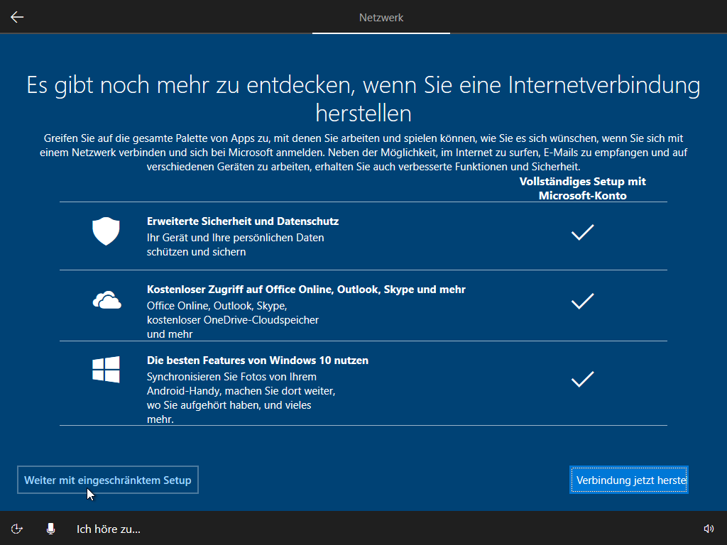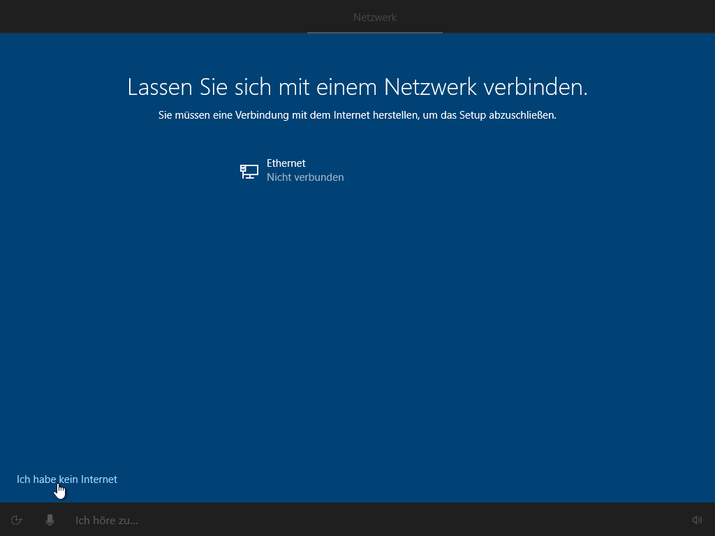 Win 10 einrichten ohne Internet lässt MS nicht zu?