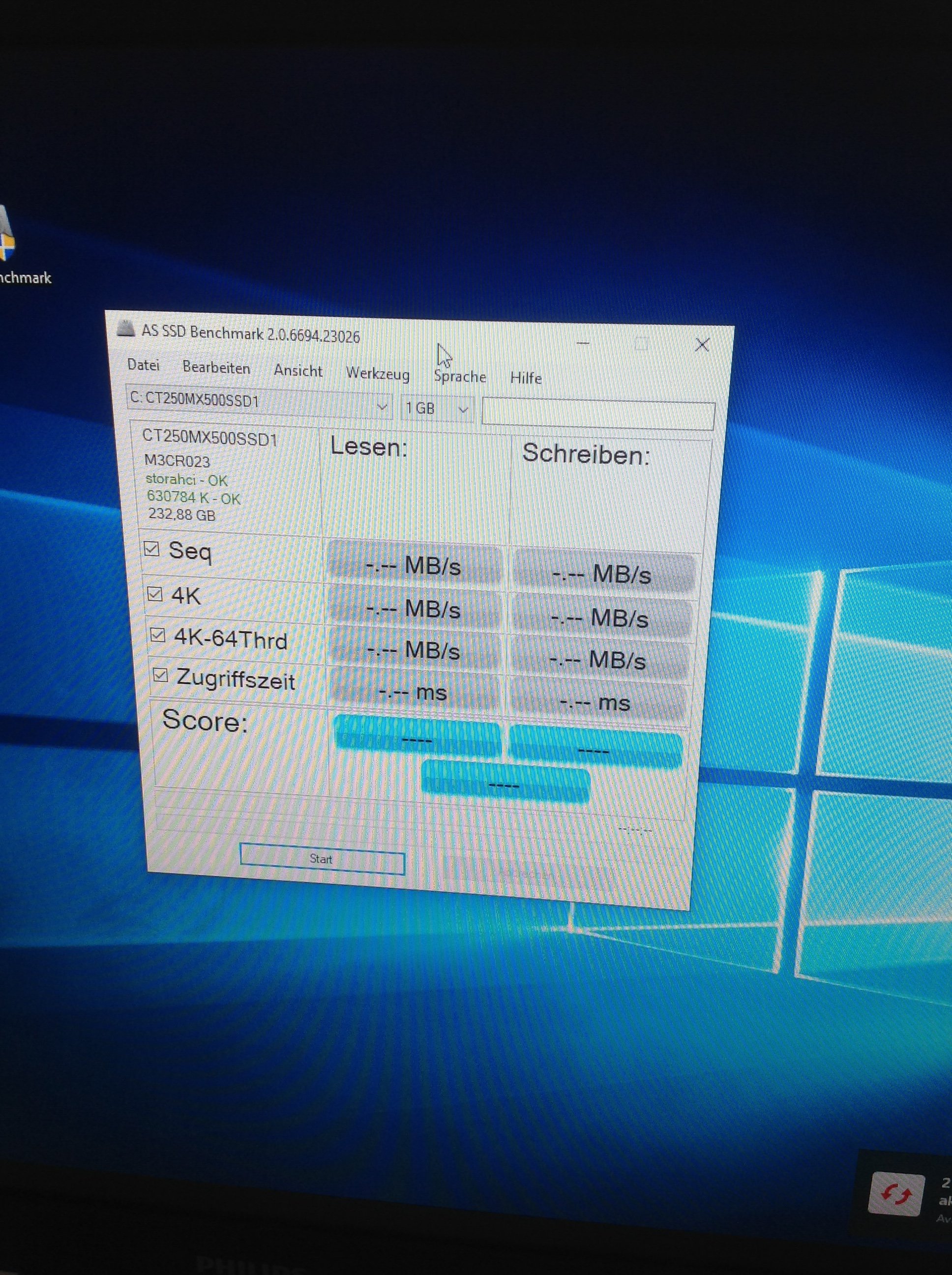 Nun sollte dieses gegen ein win 10 x64 Home weichen, welches auf einer mx500 installiert werden sollte.