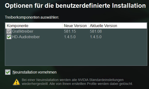 Neuinstallation anklicken, dann räumt der Nvidia-Installer auf ;)