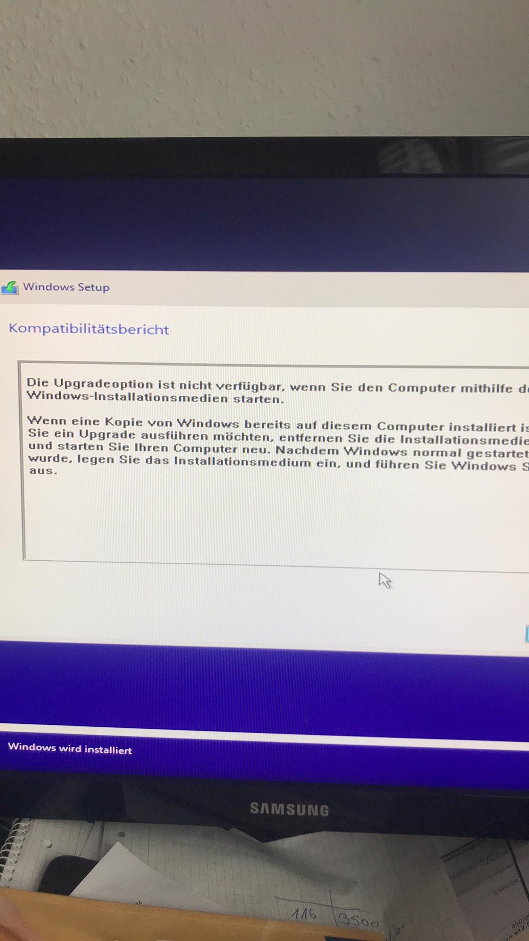 Habe mir über anderen PC anhand der Software MediaControl einen USB Stick mit Win 10 erstellt.