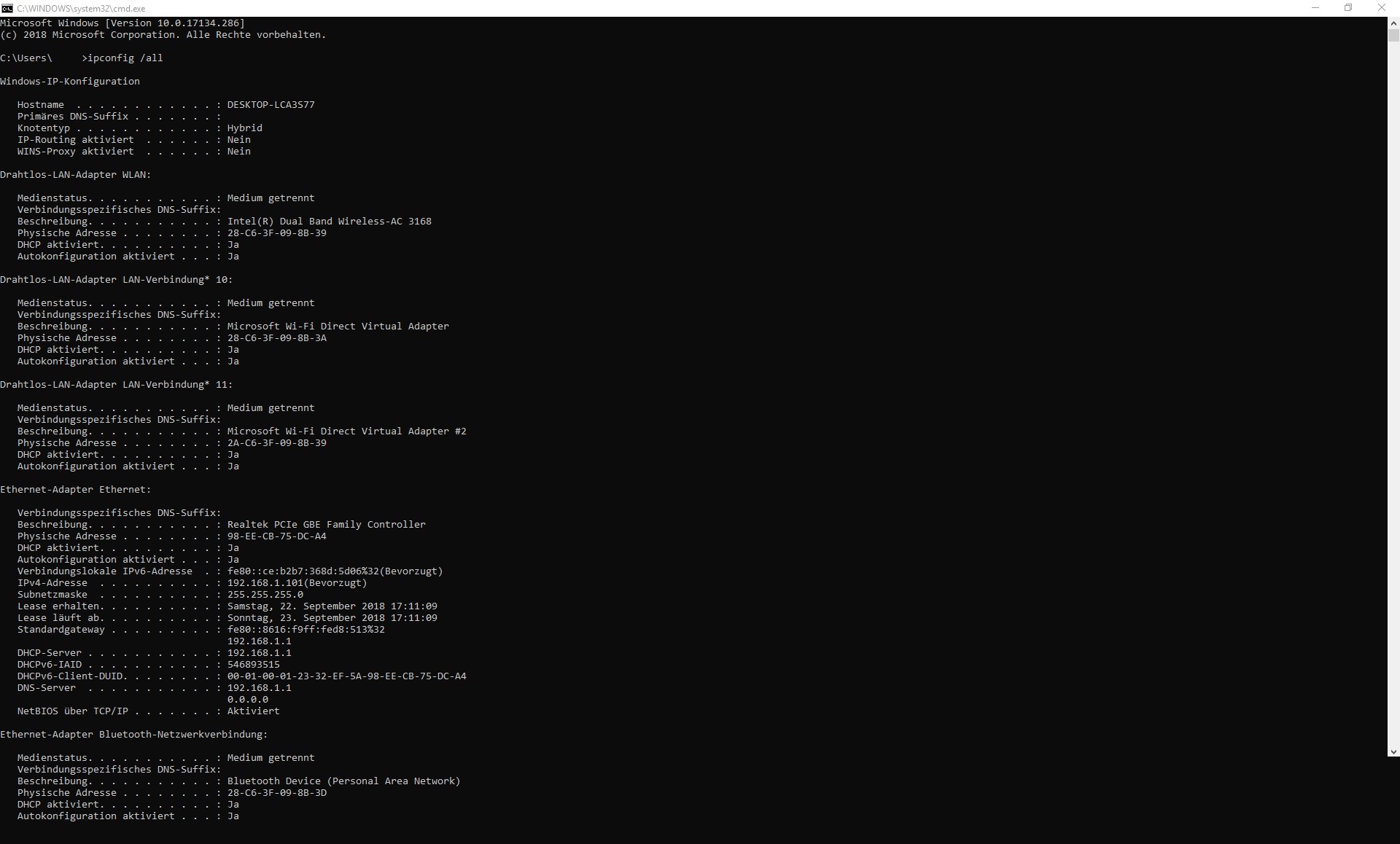 Einen Hardware Defekt schließe ich erstmal aus: mit dem Laptop kann ich mich problemlos ins WLAN einloggen und nutzen, per Kabel hab ich's auch probiert -> geht auch. Mit meinem alten PC und Win 7 ging es die ganzen Jahre vorher auch problemslos. Für mich kann es nur an Win 10 liegen....