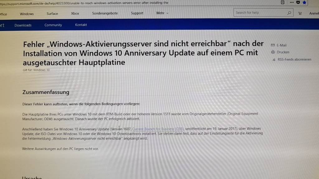 Win 10 nach FP tausch, keine aktivierung möglich.