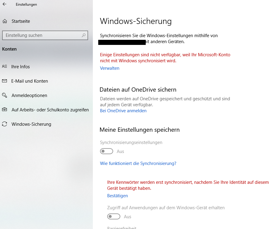 Dort ging es (wie ich erst im Nachhinein, festgestellt habe) um die Synchronisierung meines Microsoft-Kontos mit meinem Windows 10 (Pro).