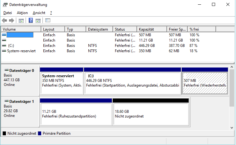 Habe Win 10 Pro auf einer OCZ Trion 480GB neu installiert. Die Partitionstabelle zeigt aber komische Partitionen an (sind sicher alle von SSD).