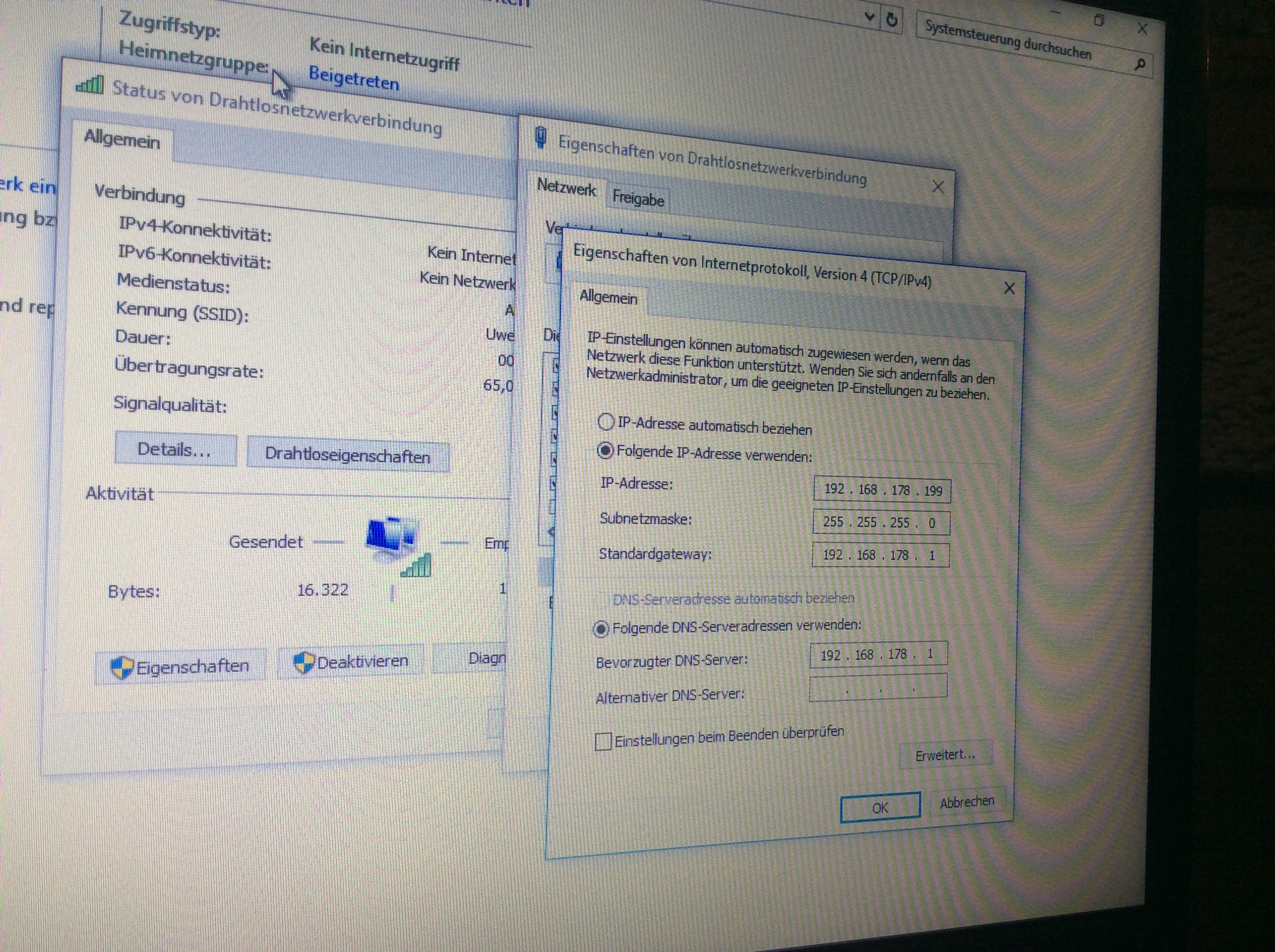 Leider hab ich Probleme mit dem Netzwerk. Fehler :" Nicht identifiziertes Netzwerk" "Ethernet begrenzt".