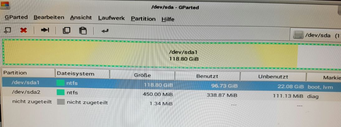 Aber er weißt keiner windows Partition ein laufwerksbuchstaben zu.