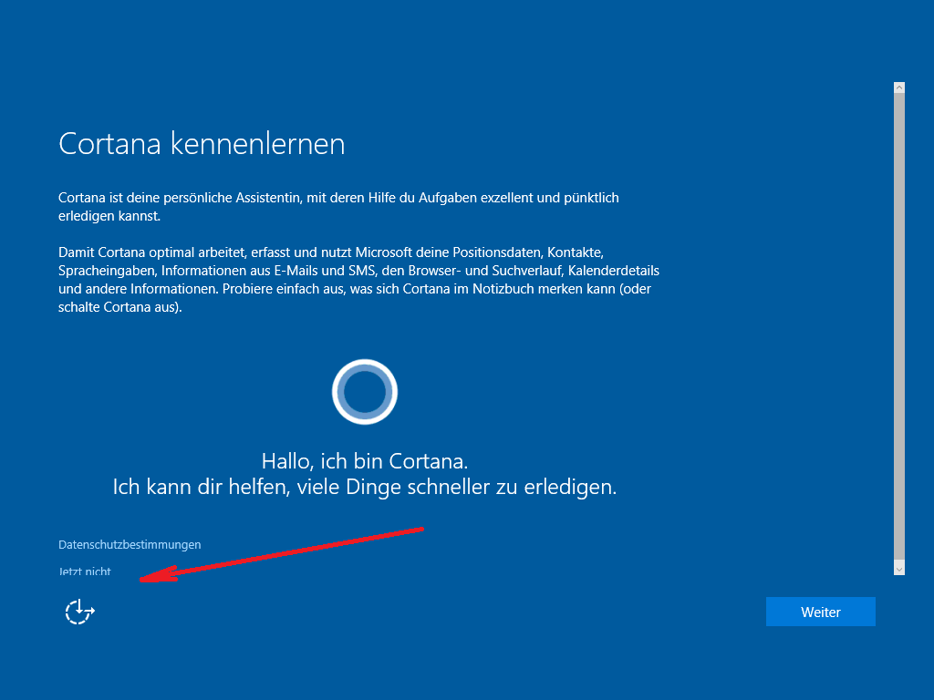 Es kommt ab Bild 8 die Einrichtung von Windows und da kommt Cortana, MS Konto, Benutzer anlegen usw.