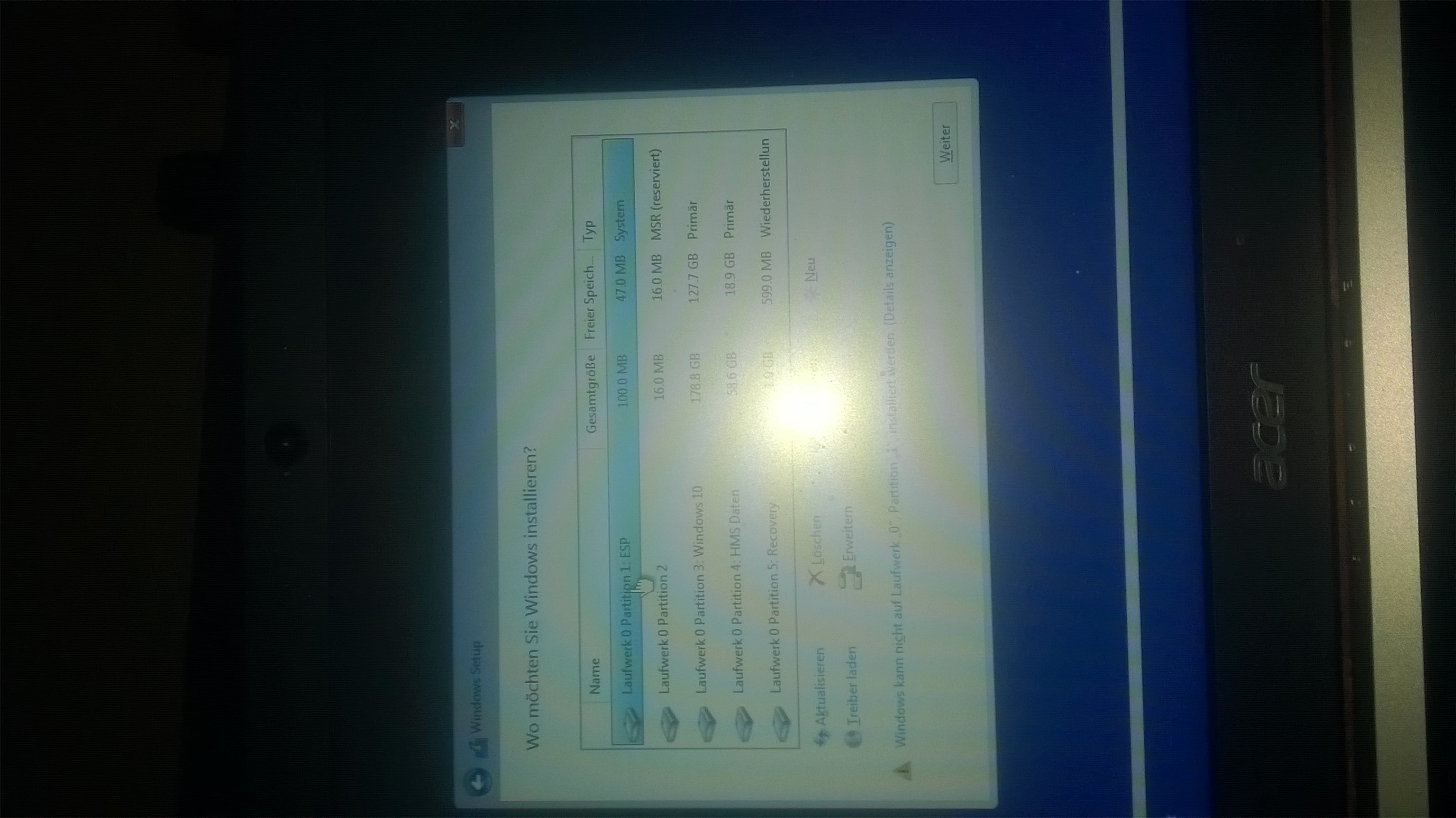 Sonst gibt es eine Fehlermeldung "Windows kann auf dem Gerät nicht installiert werden."