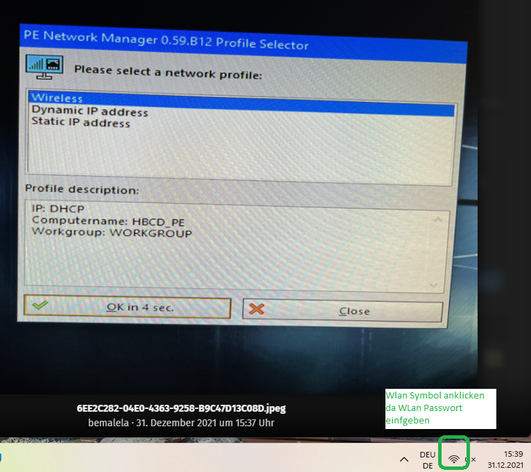 Kurz nach dem Hochfahren bei Hiren erscheint folgende Meldung, die ist nach 5 Sekunden wieder automatisch weg: