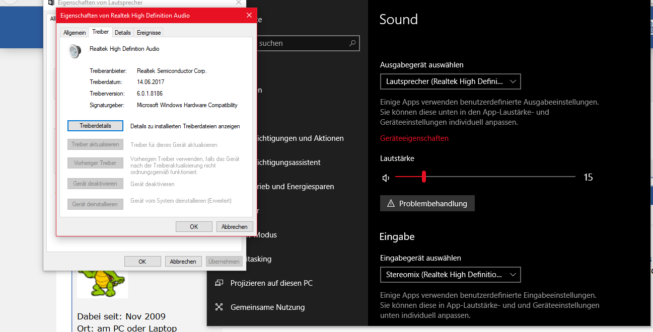 Win 10 und Realthek HD Audio Manager