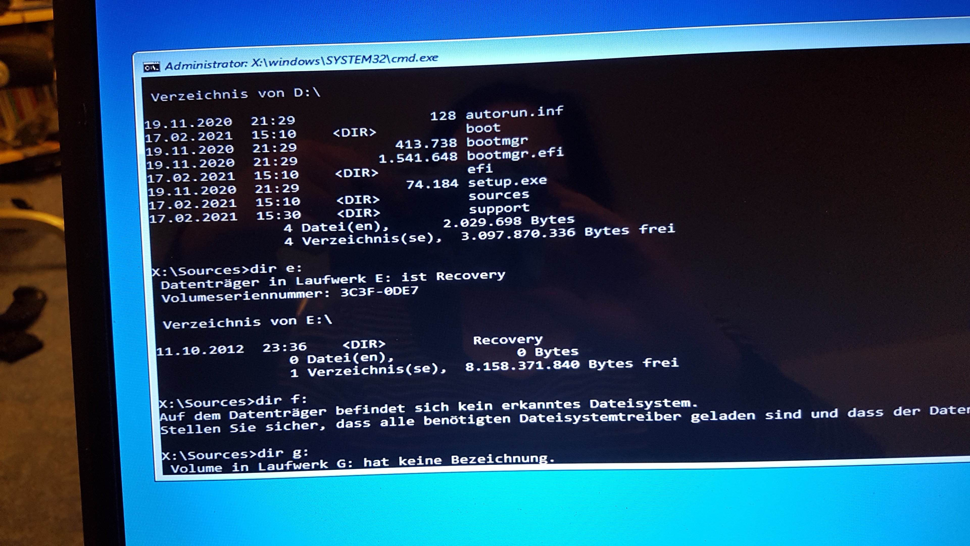 Auch über die Eingabeaufforderung kann ich nichts erreichen. Er findet immer nichts.