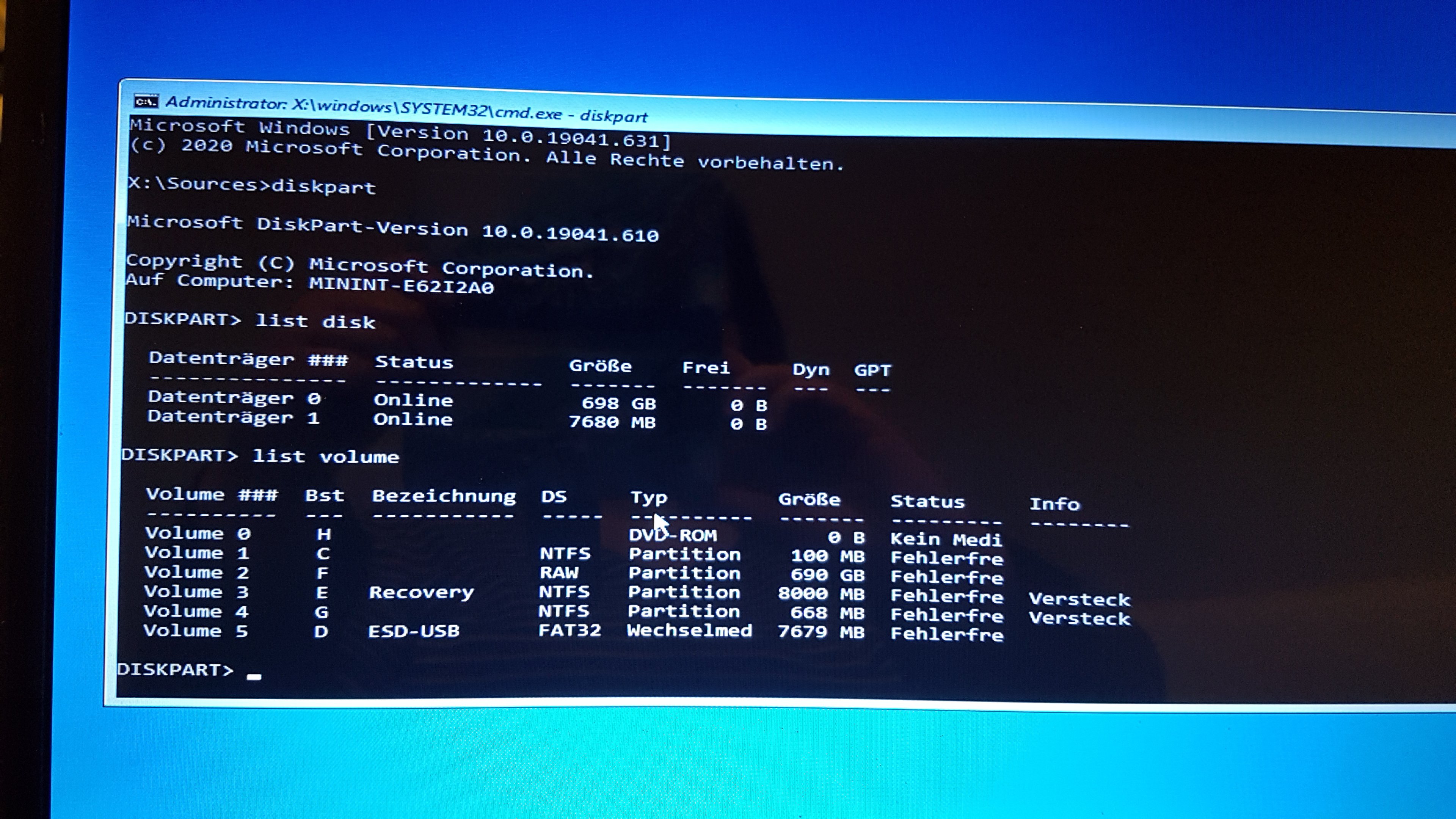 Leider komme ich nicht mit den üblichen Tasten f8, f10 mit Shift oder strg, etc. Pp. in den abgesicherten Modus.