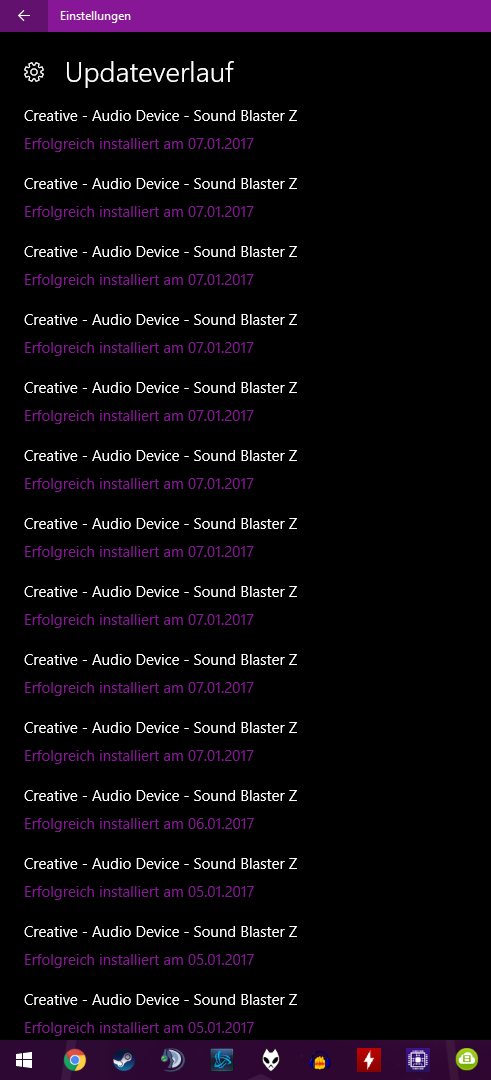 Der versucht mir durchgehend einen Treiber für die Soundblaster Z zu installieren, obwohl sich diese nicht mehr in meinem PC befindet und Gerätetreiber Updates deaktiviert sind.