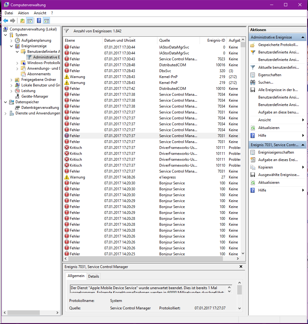 Ka. ich hatte bisher immer unendlich viele Fehler und Warnungen in der Ereignisanzeige. Ist das nicht normal?:D