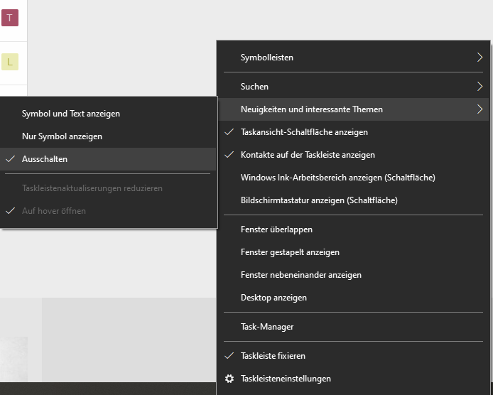 win 10 wetter symbolleiste unten rechts löschen?